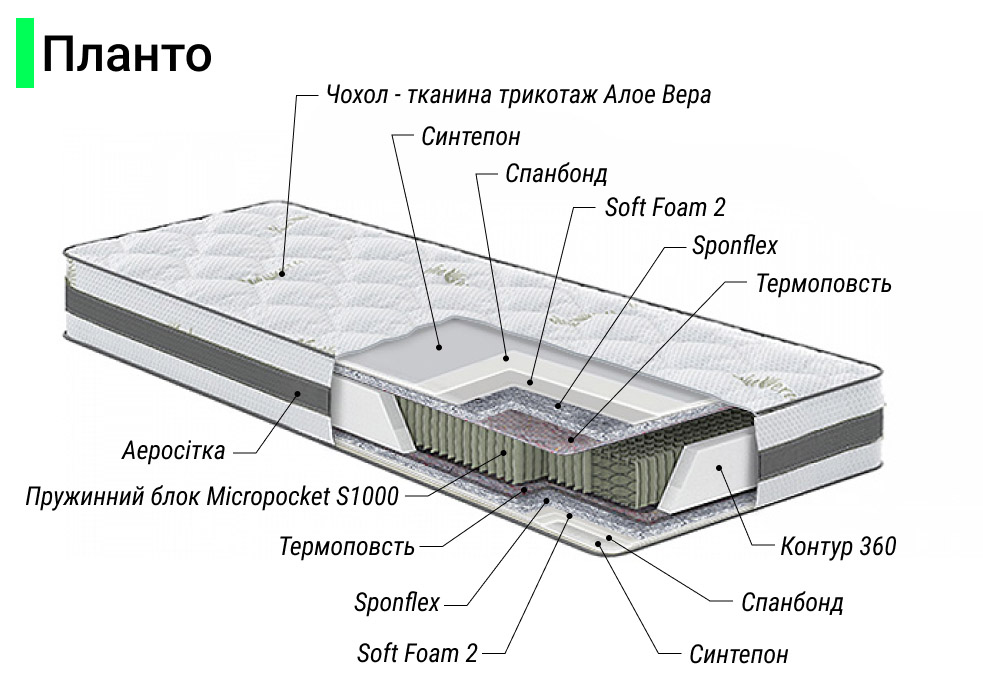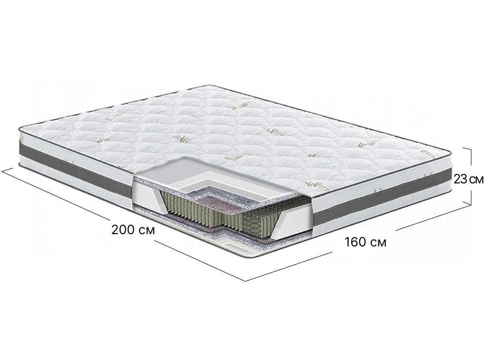 Фото Матрац пружинний двоспальний Aloe Vera Planto 160x200 см • висота 23 см (помірно-жорсткий) - SOFINO.UA