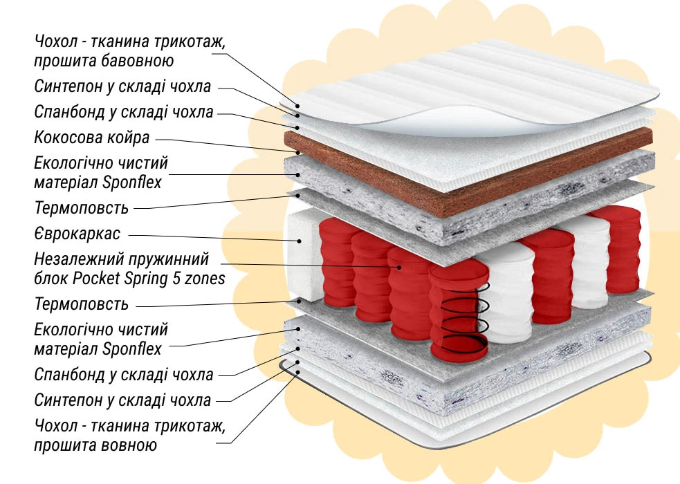 Фото Матрац пружинний Relax Chill 60x180x20 см / 2в1 середня жорсткість + помірно-жорсткий (2753798) - SOFINO.UA