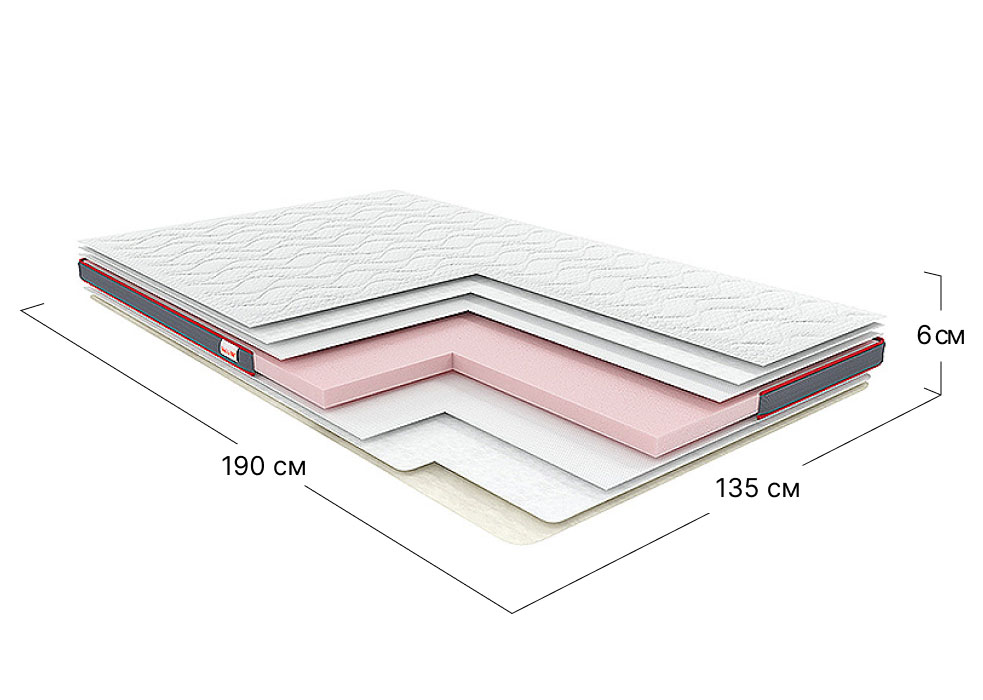 Фото Тонкий матрац скручений полуторний Aero Flex 135x190 см • висота 6 см (середня жорсткість) - SOFINO.UA