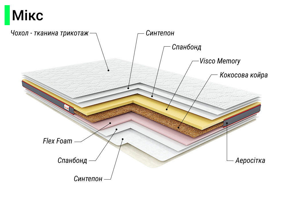 Тонкий матрац скручений двоспальний Mix 140x190 см • висота 6 см (2в1 помірно-жорсткий + середня жорсткість)