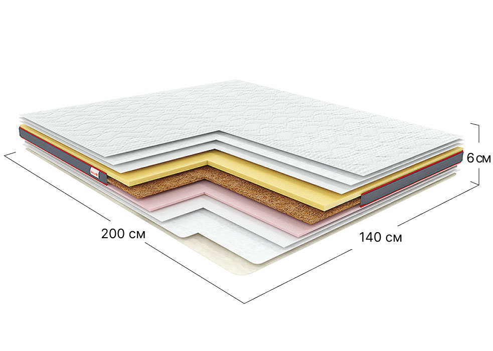 Фото Тонкий матрац скручений двоспальний Mix 140x200 см • висота 6 см (2в1 помірно-жорсткий + середня жорсткість) - SOFINO.UA