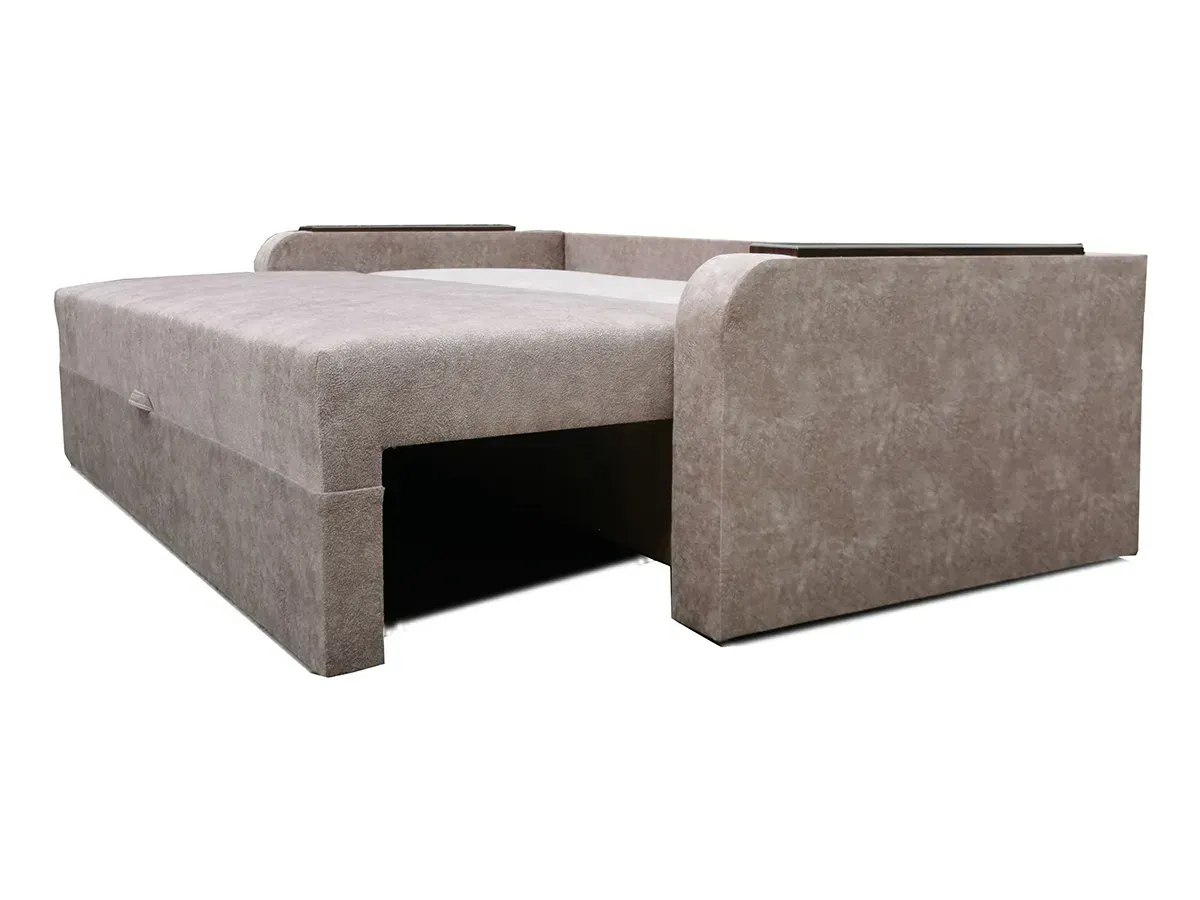 Диван обладнано механізмом трансформації "Єврокнижка" — надійним та зручним у щоденному використанні. Наповнення із ламелей та пінополіуретану створює ортопедичний ефект і забезпечує комфортний сон. Під сидінням знаходиться місткий короб для білизни чи зберігання речей.