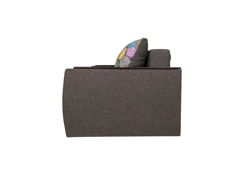 У комплекті — три декоративні подушки, які додають кольору та дозволяють зручно відпочити. Функціональні підлокітники оснащені накладками з ДСП, на які зручно поставити чашку чи покласти телефон. У внутрішніх нішах, що відкриваються, зручно зберігати книги, пульти або напої.