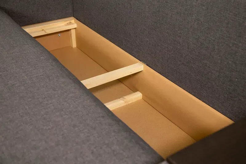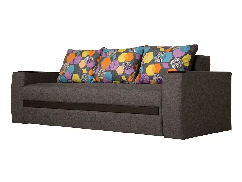 У комплекті — три декоративні подушки, які додають кольору та дозволяють зручно відпочити. Функціональні підлокітники оснащені накладками з ДСП, на які зручно поставити чашку чи покласти телефон. У внутрішніх нішах, що відкриваються, зручно зберігати книги, пульти або напої.