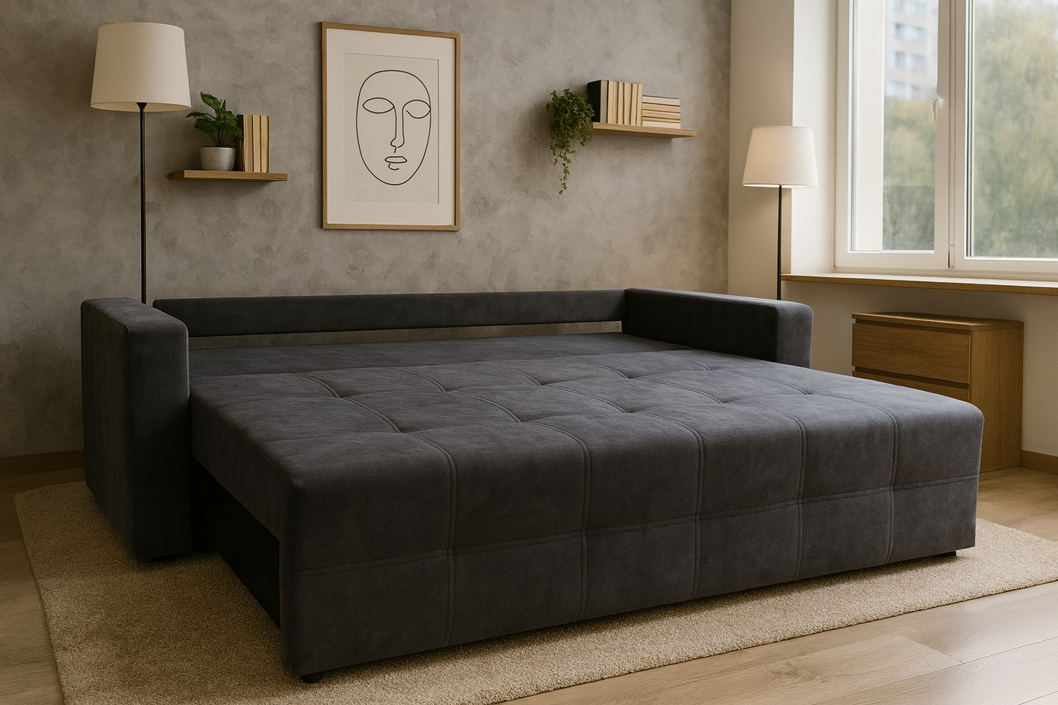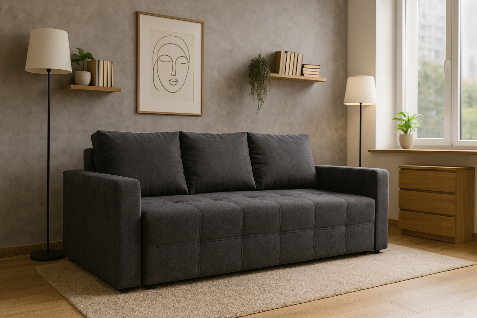 RidneTUT Norman — це ергономічний та стильний вибір для вашого простору. Завдяки розміру спального місця 150х190 см, він забезпечує комфортний і здоровий сон. Габаритні розміри дивану — 105х220 см.