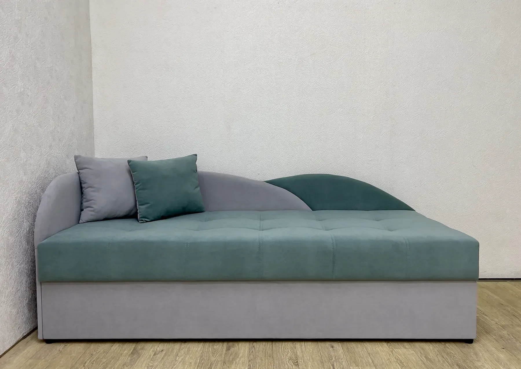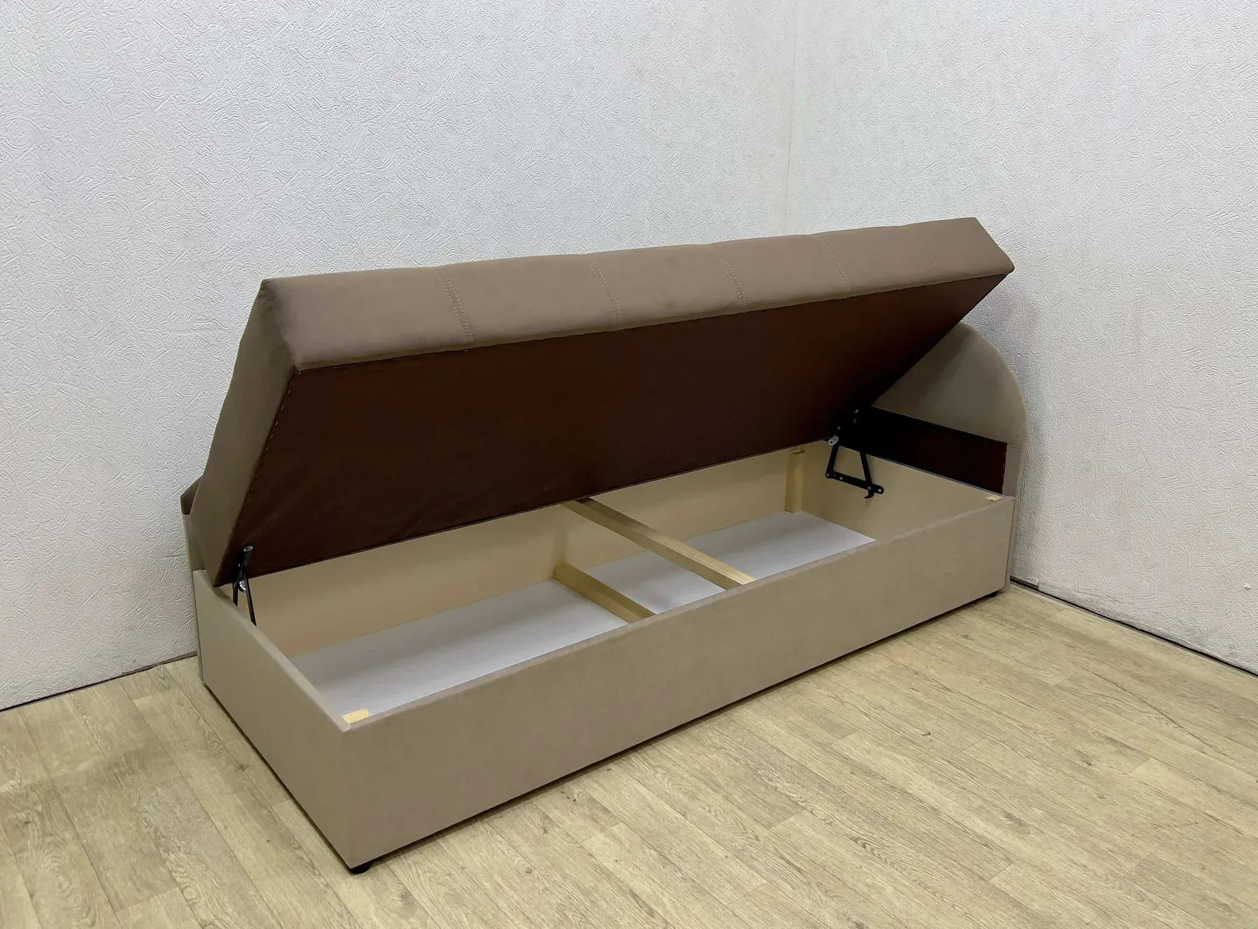 Механізм трансформації «тахта-ліжко» з підйомним механізмом дозволяє легко перетворити диван на спальне місце. Додатковий короб для білизни додає зручності у зберіганні речей.