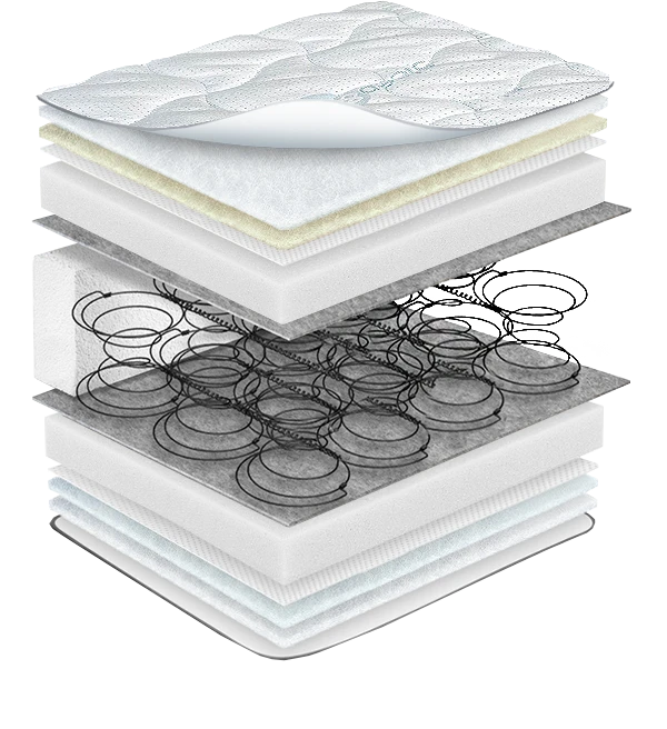 Наповненняпружини Bonnel, посилені, євроборт 10 см, масажна піна, бавовна, вовна, піна ортопедична, термоповсть