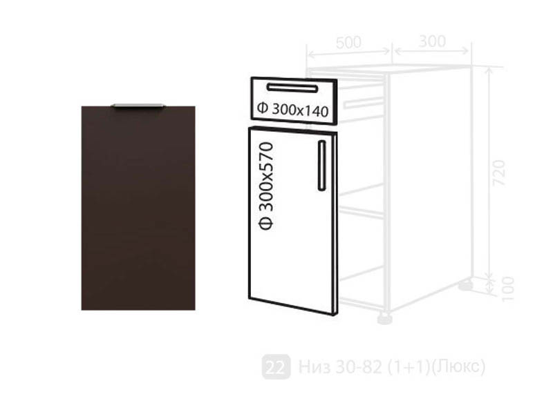 Другие варианты для Фасад • Флет • ш 30 (1+1) • Шоколадний • Ручка алюмінієва