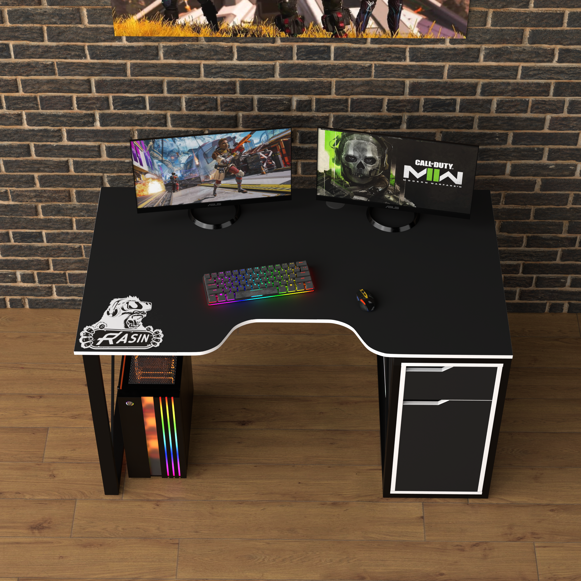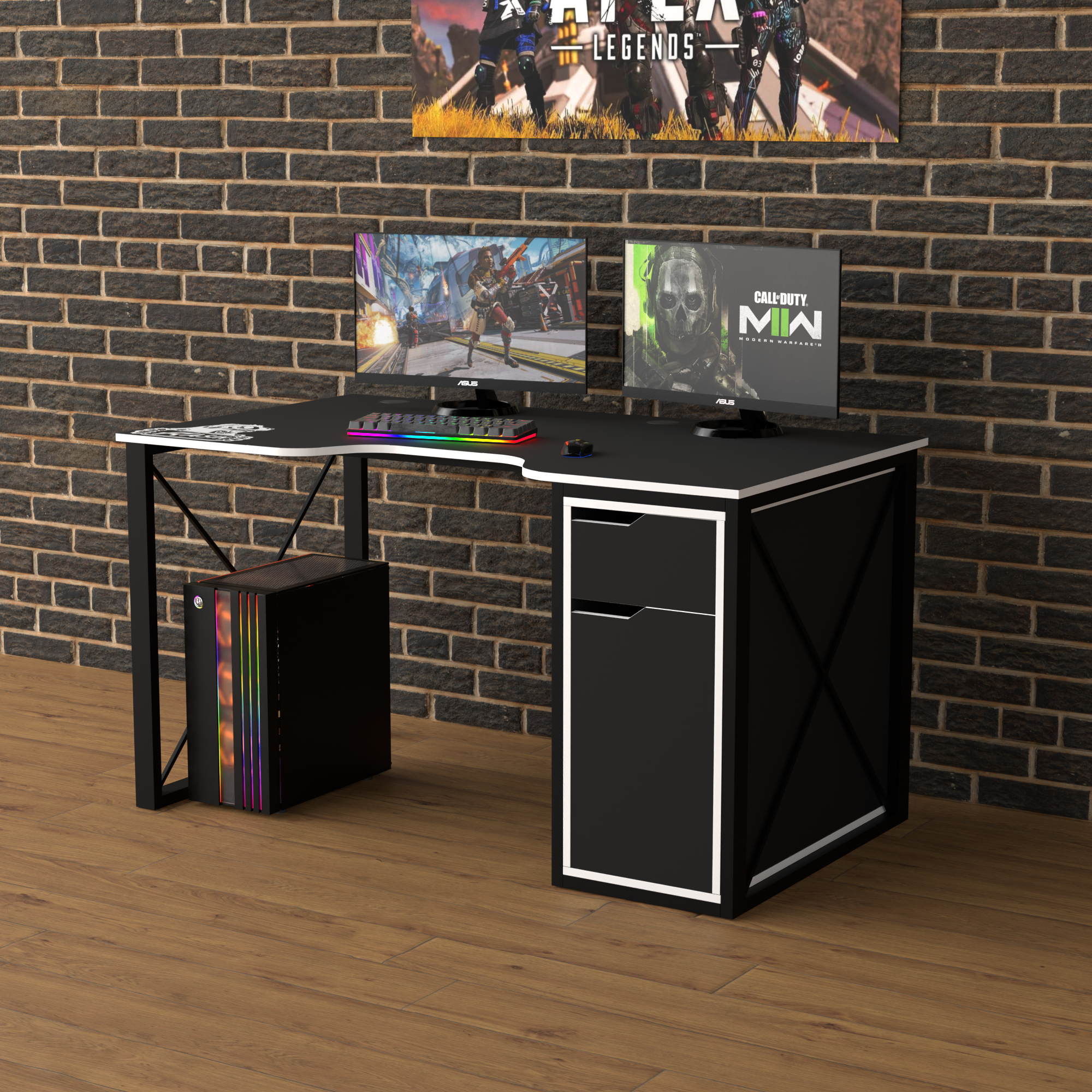Геймерський ЛОФТ стіл Rasin LOFT-17 чорний+білий 1400х800
