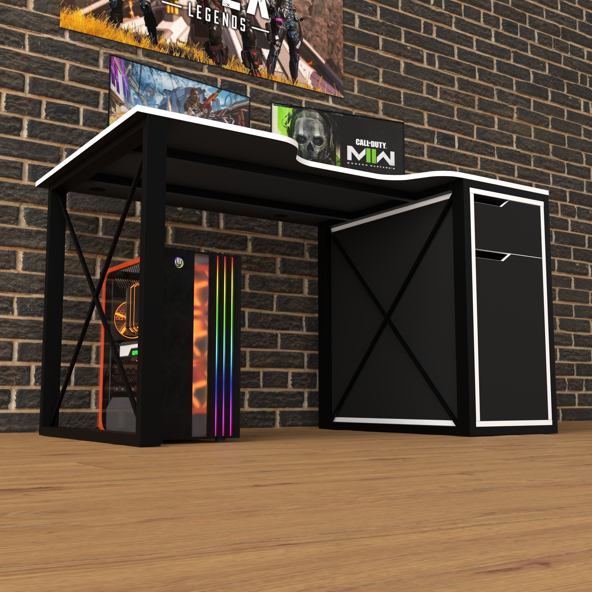 Фото Геймерський ЛОФТ стіл Rasin LOFT-17 чорний+білий 1400х800 - SOFINO.UA