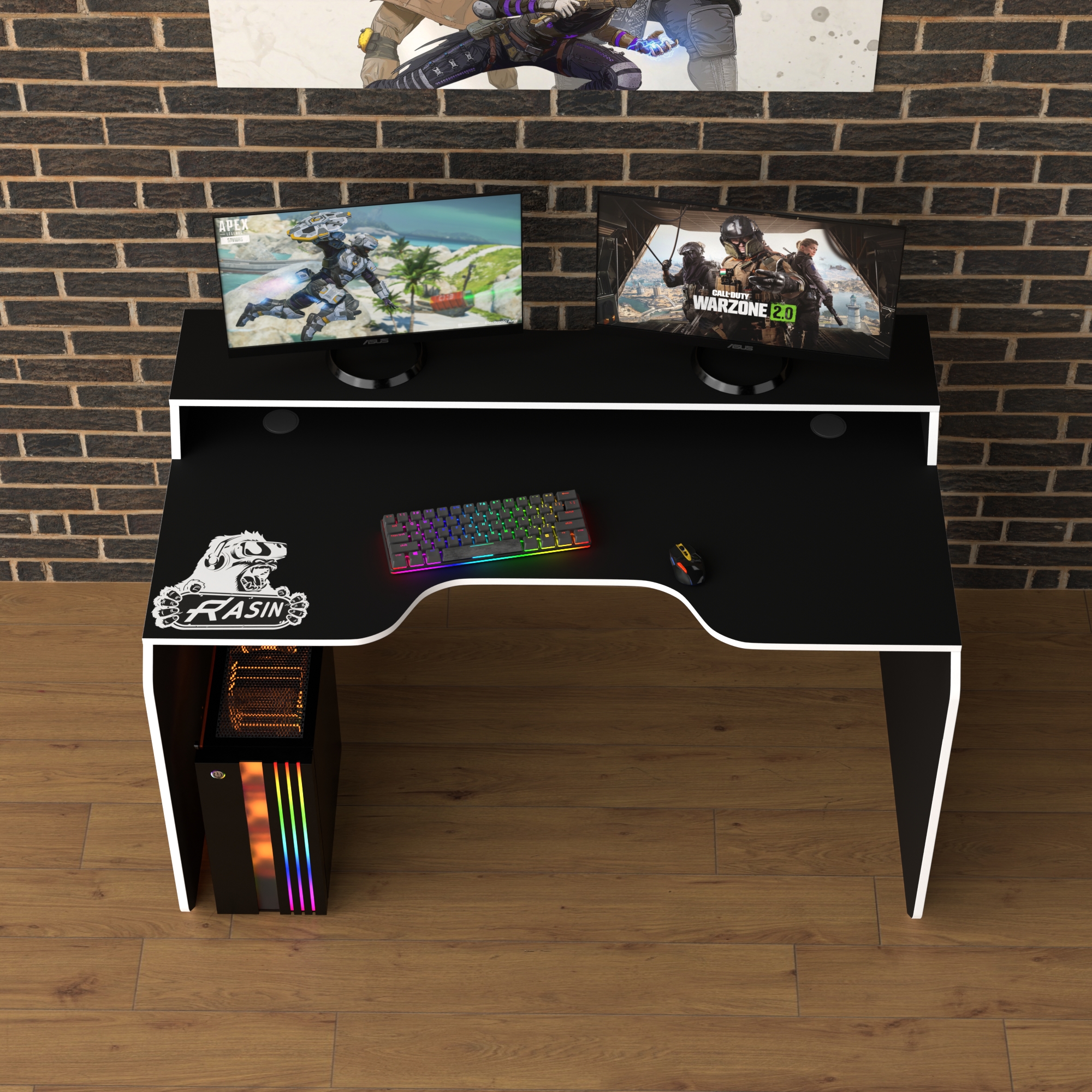 Фото Геймерський стіл Rasin RS-24 чорний+білий лДСП 1200х800 - SOFINO.UA