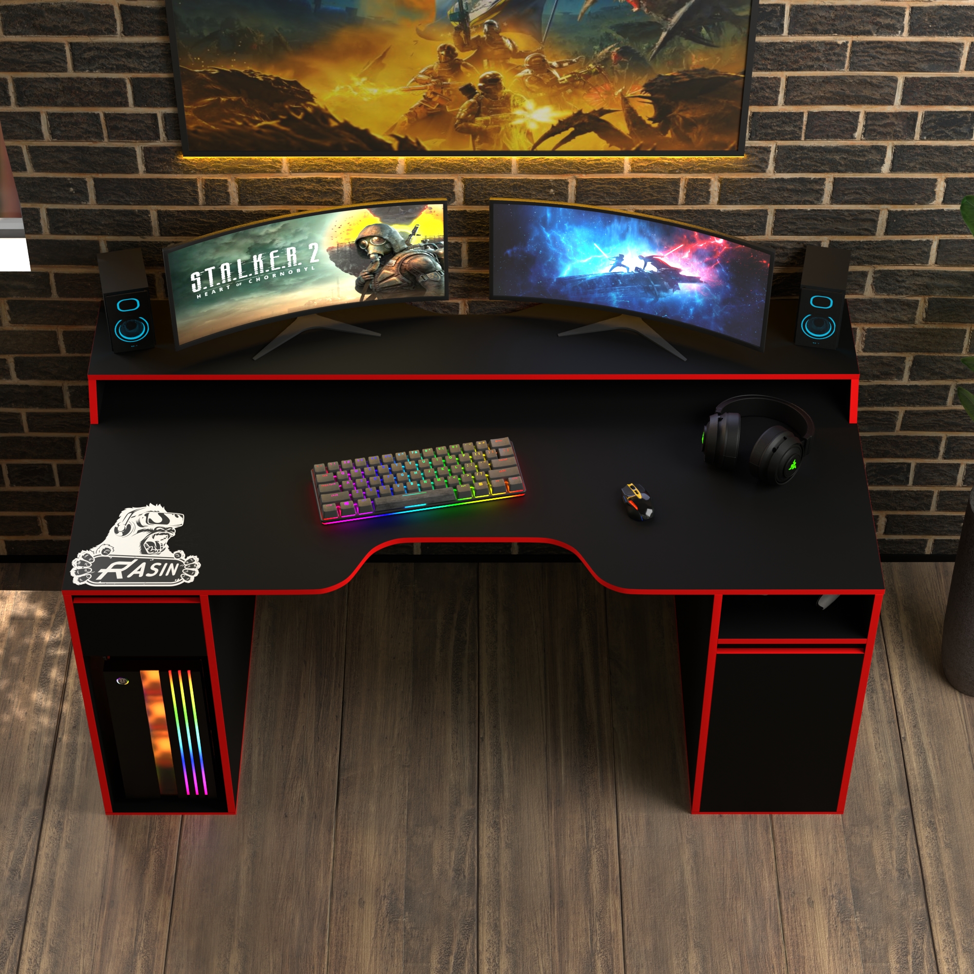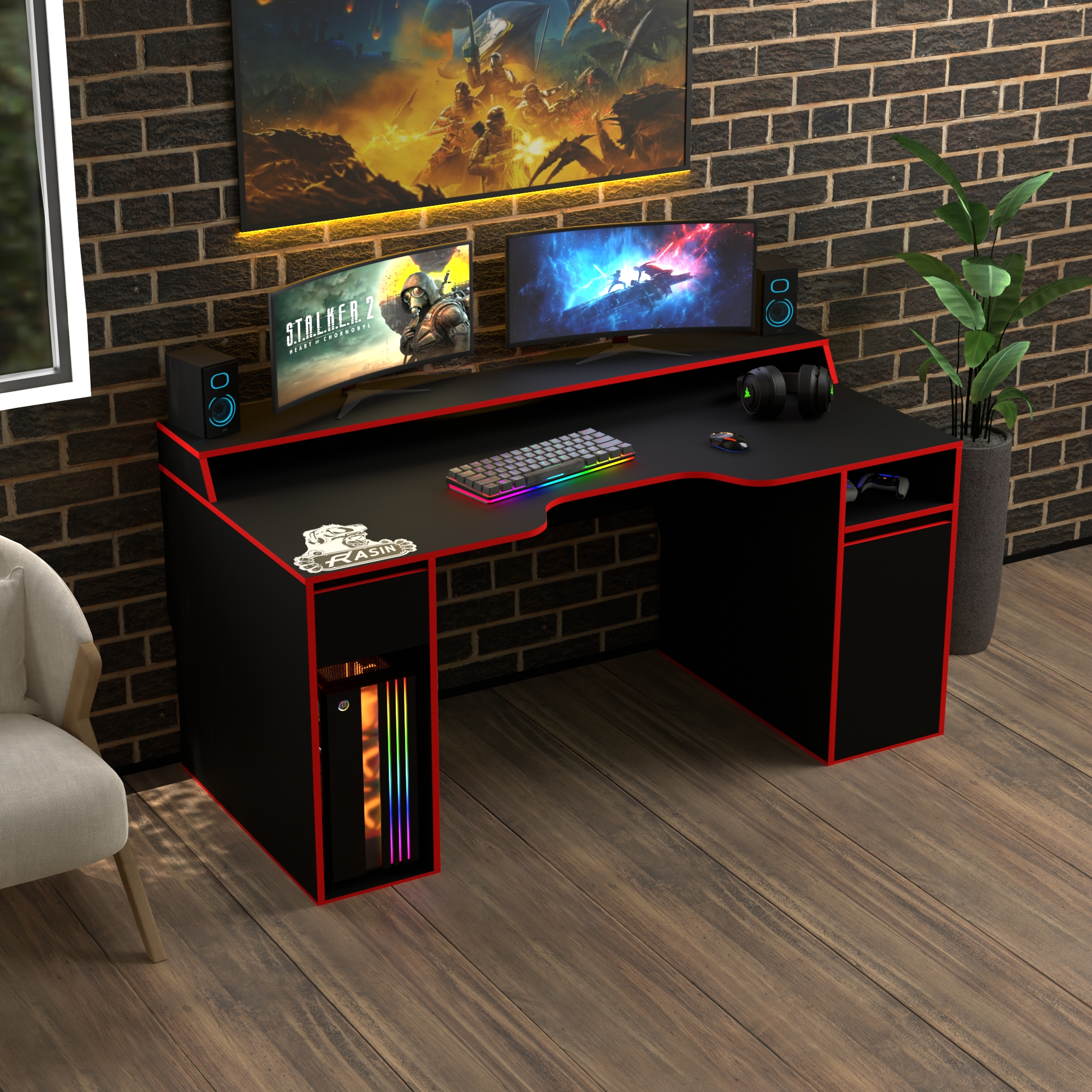 Геймерський стіл Rasin RS-27 чорний+червоний лДСП 1700х800