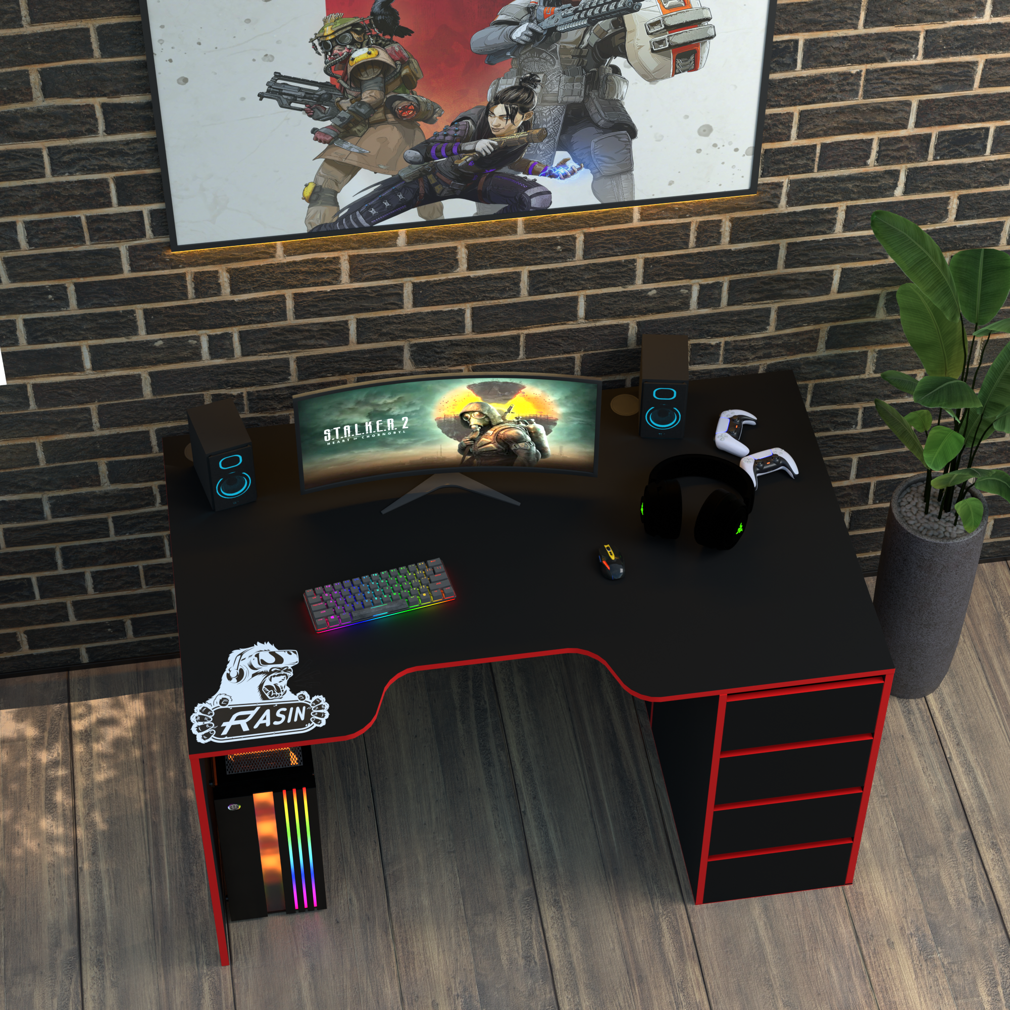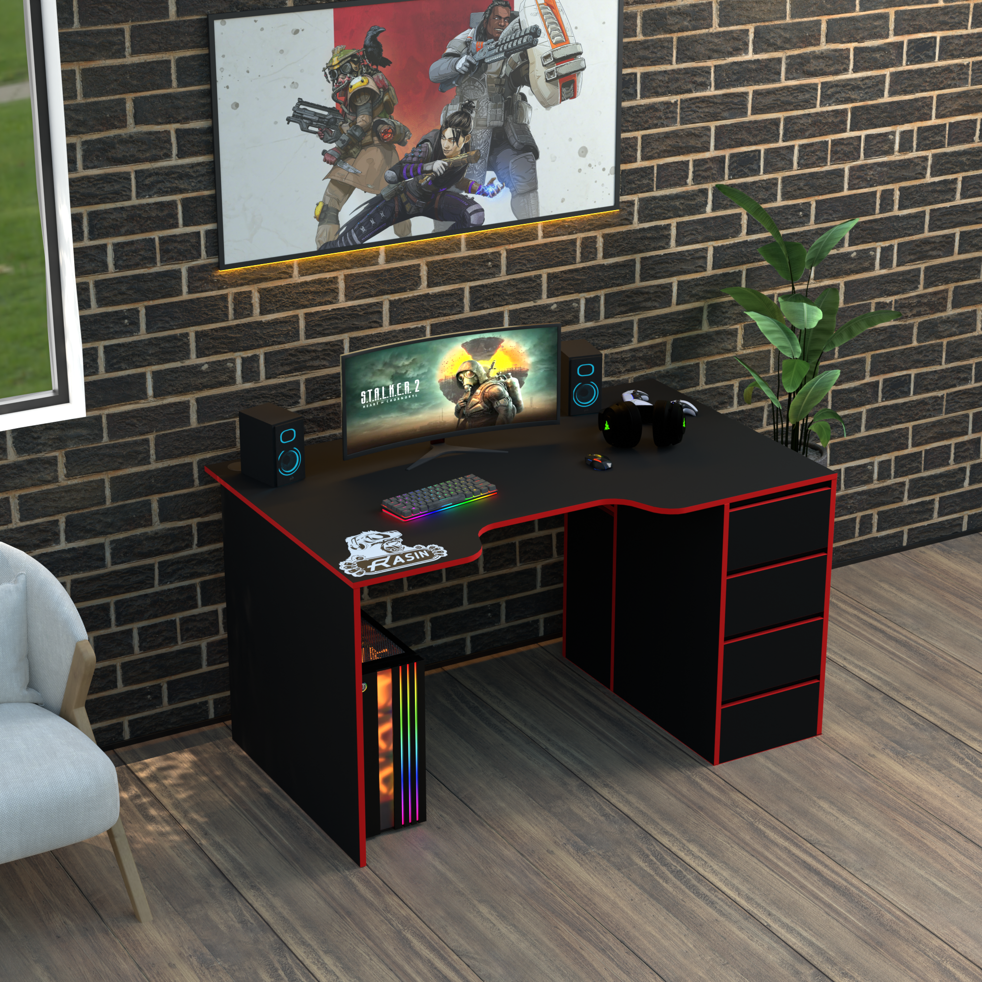 Геймерський стіл Rasin RS-33 чорний+червоний лДСП 1400х800