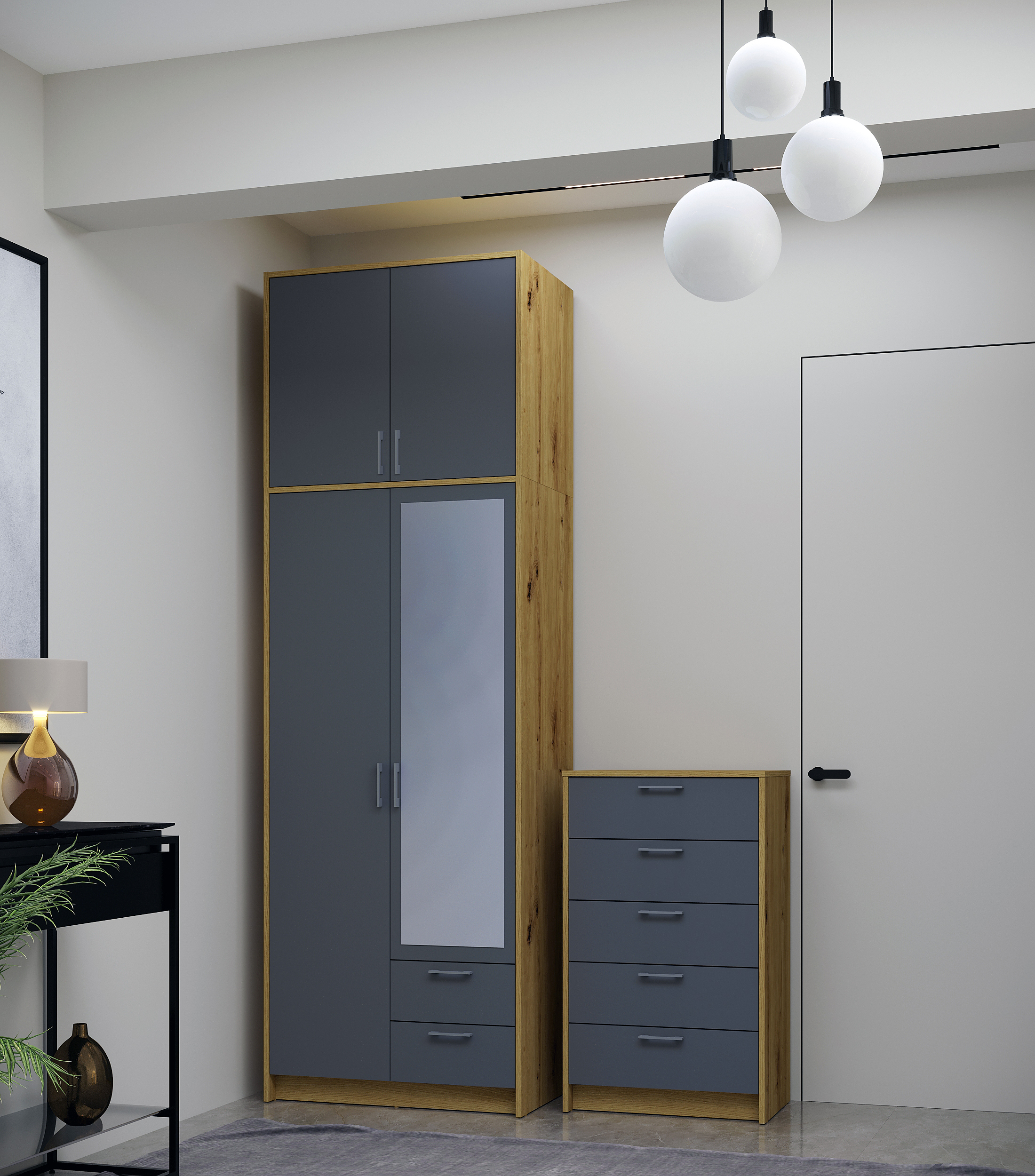 Фото Комод Doros Ронді Дуб Артізан/Графіт 5 шухляд 60х40х100 (41516188) - SOFINO.UA