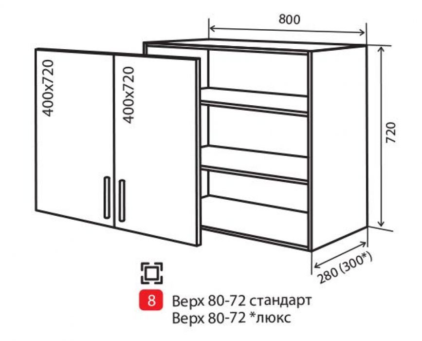Корпус • Верх • Модуль №8 • Стандарт • 80*72 • Горіх