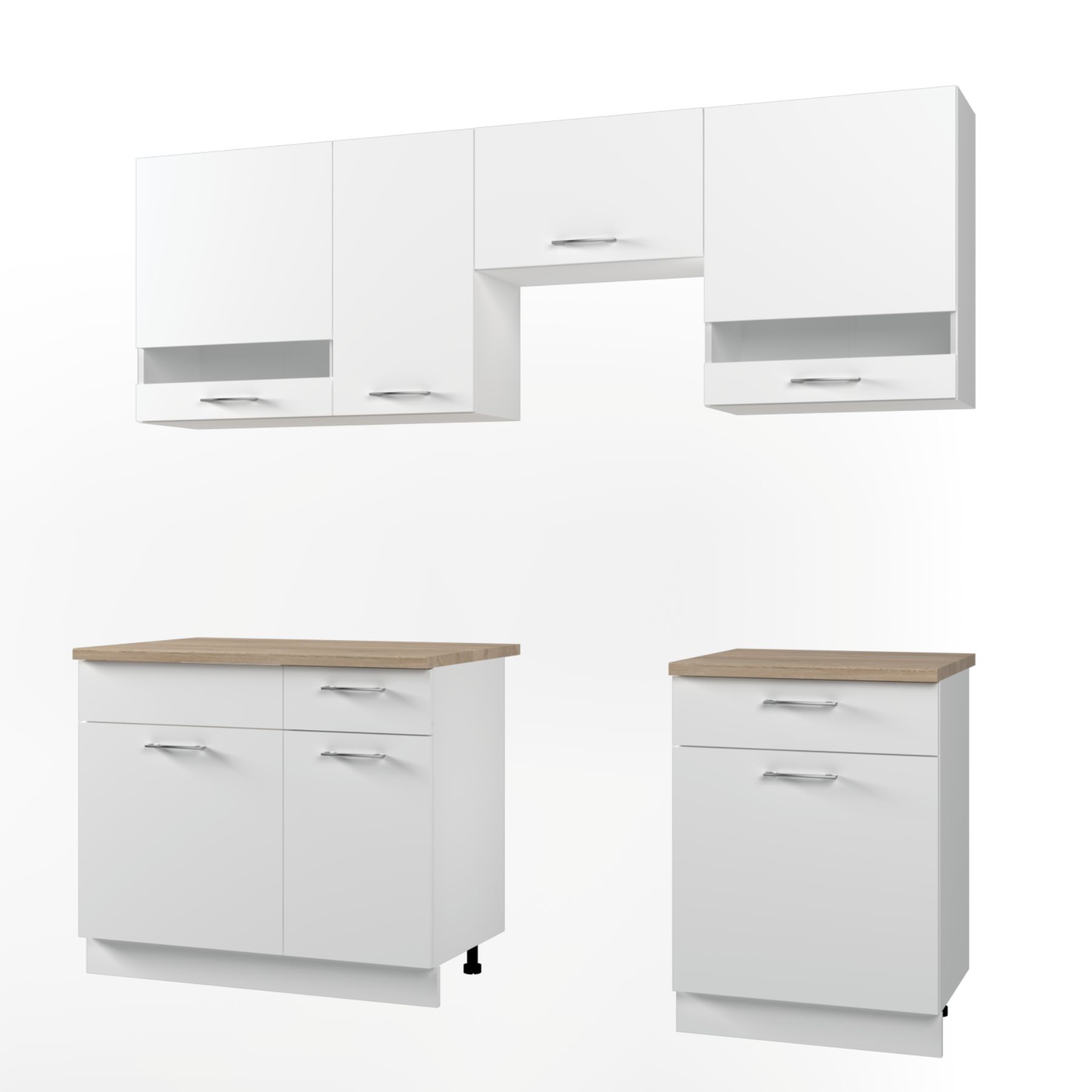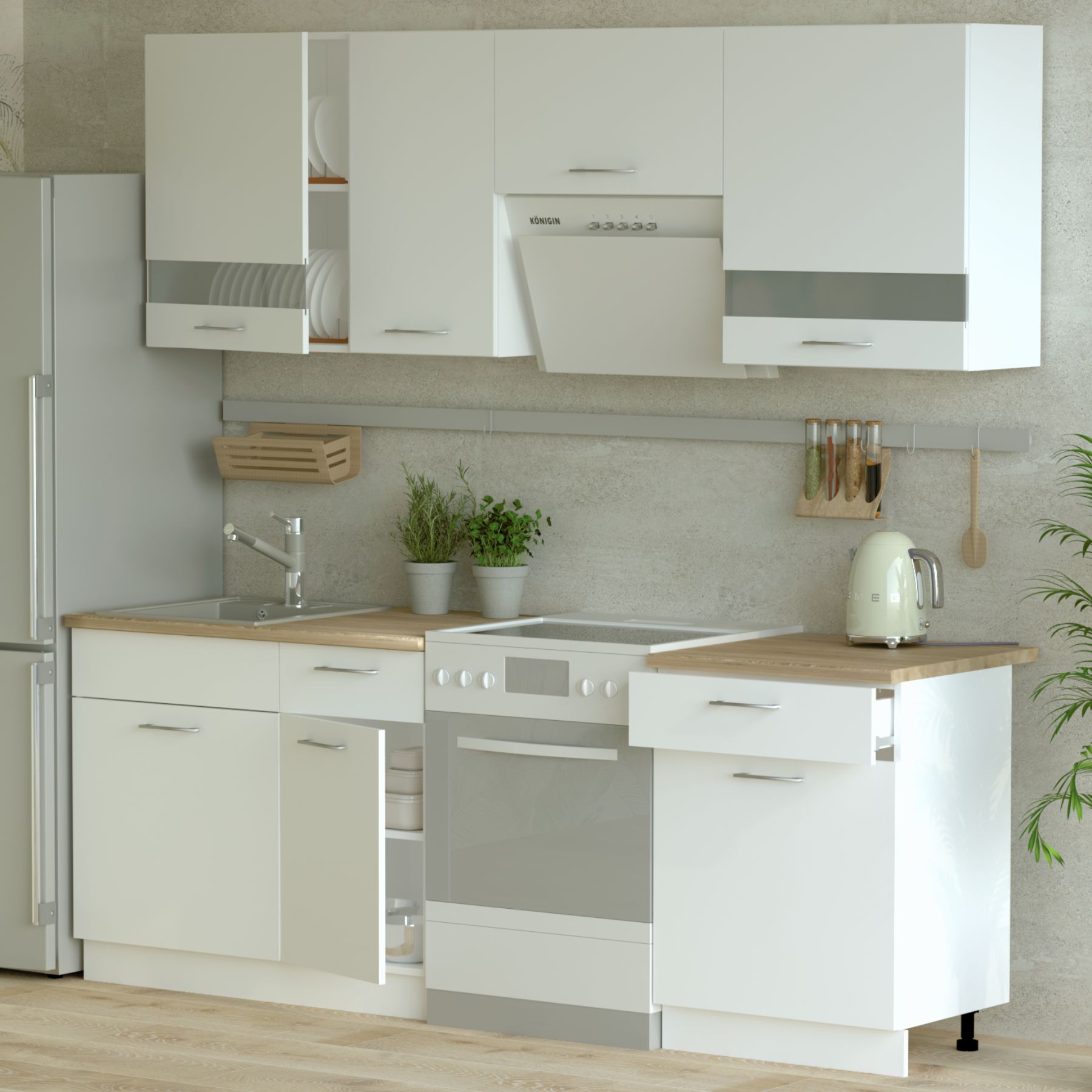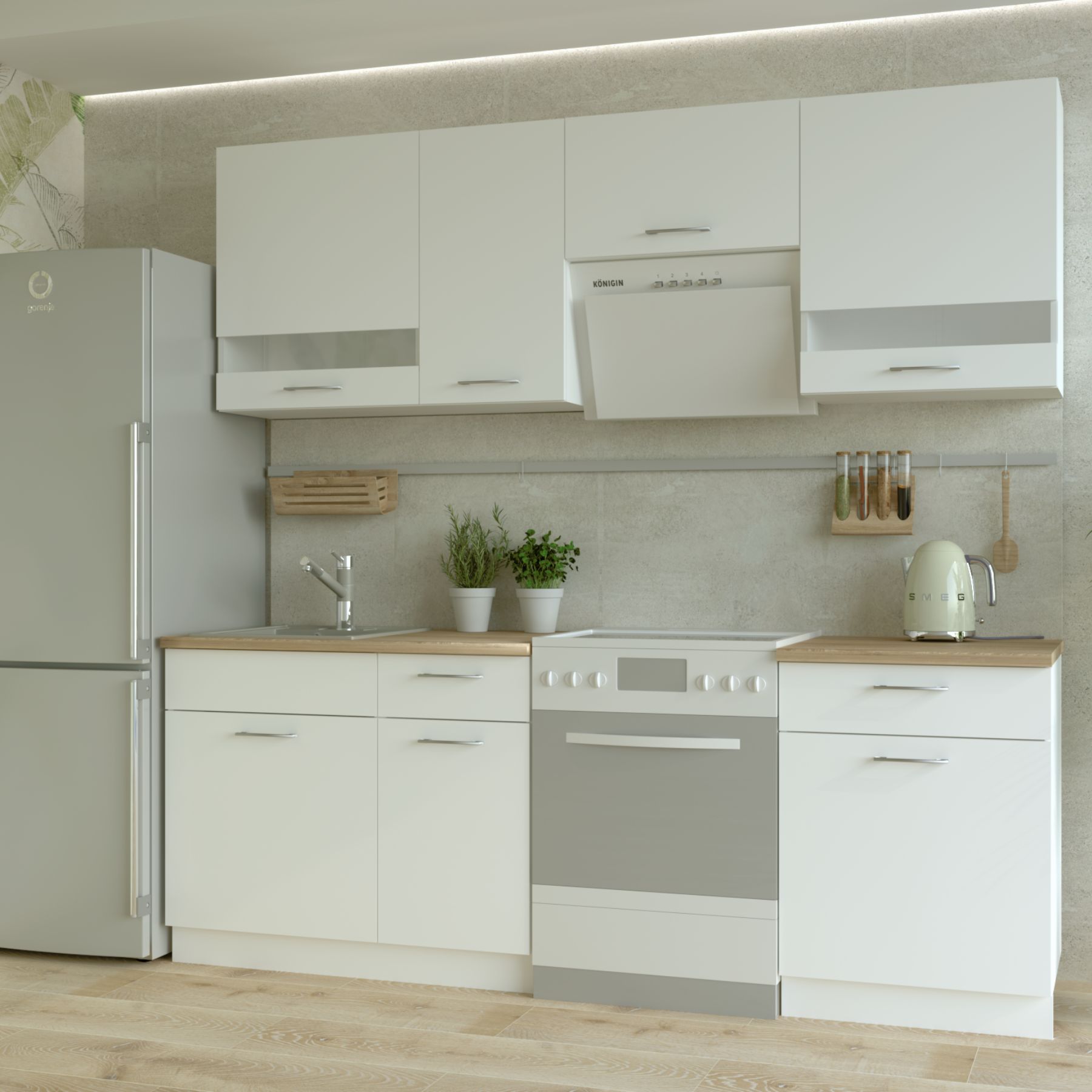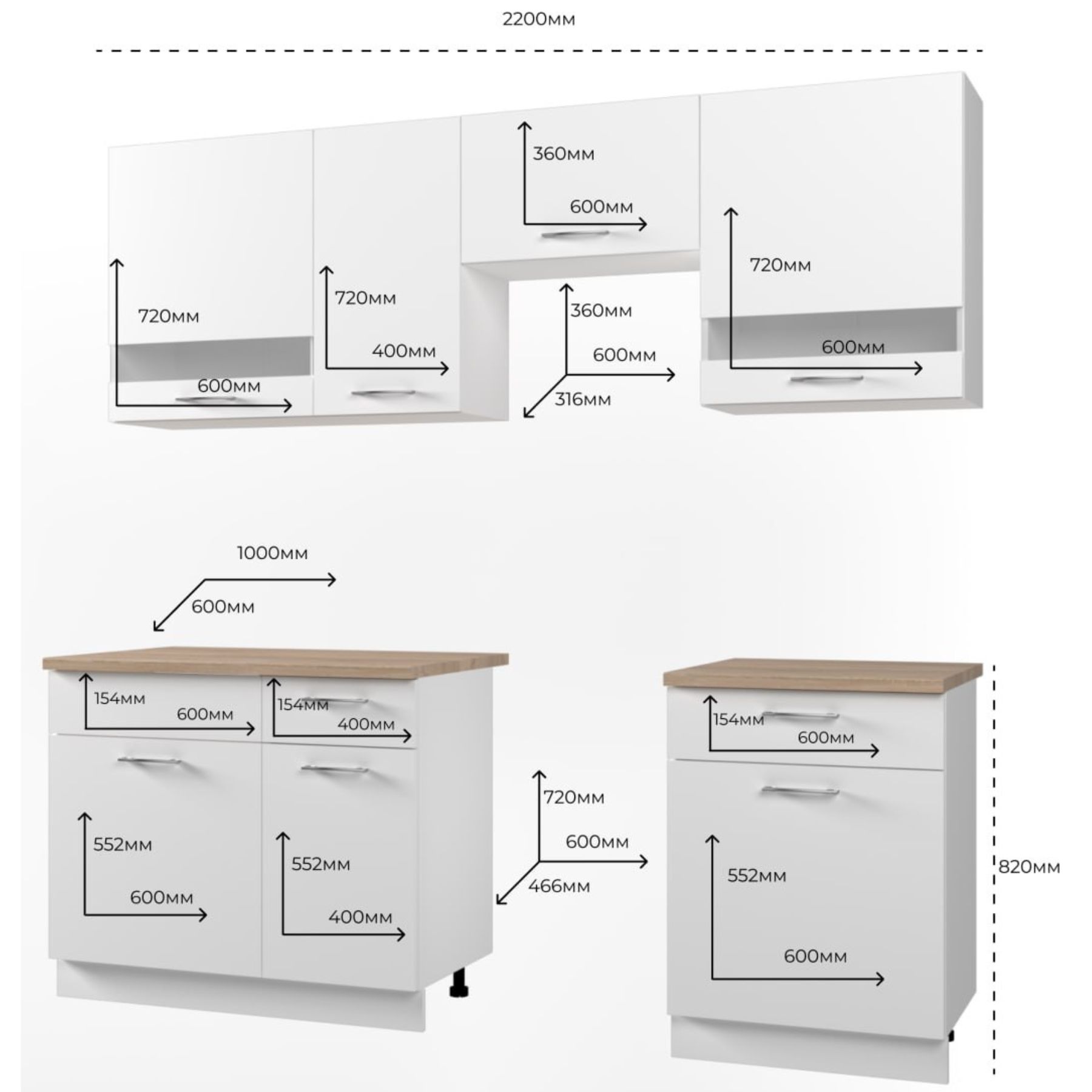 Кухня Doros Лея Білий гладкий / Cонома ДСП / вставки скло 220х60х250 (80359337)