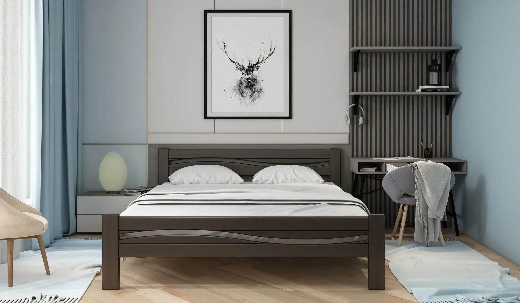 Ліжко "Хвиля" — це вдале поєднання витонченого хвилеподібного дизайну спинки з натуральною фактурою дерева. Створене для затишного сну і гармонії у вашій спальні.