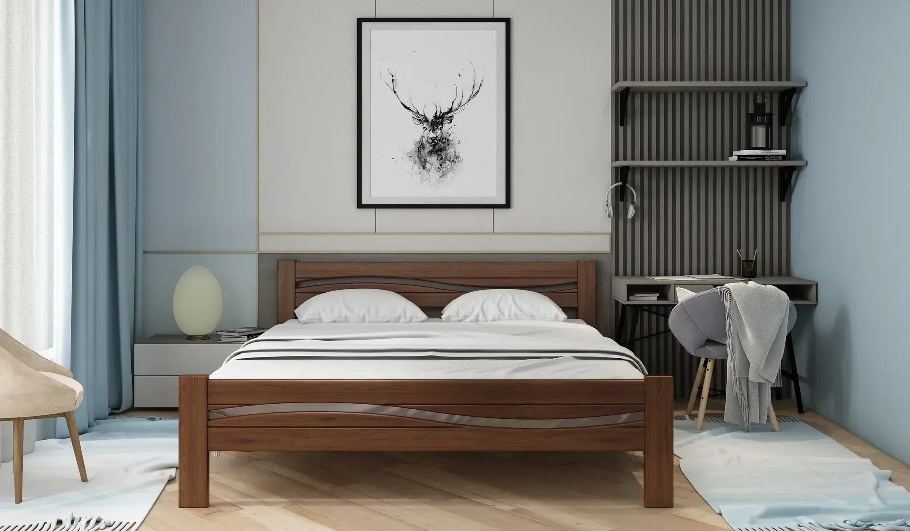 Ліжко "Хвиля" — це вдале поєднання витонченого хвилеподібного дизайну спинки з натуральною фактурою дерева. Створене для затишного сну і гармонії у вашій спальні.