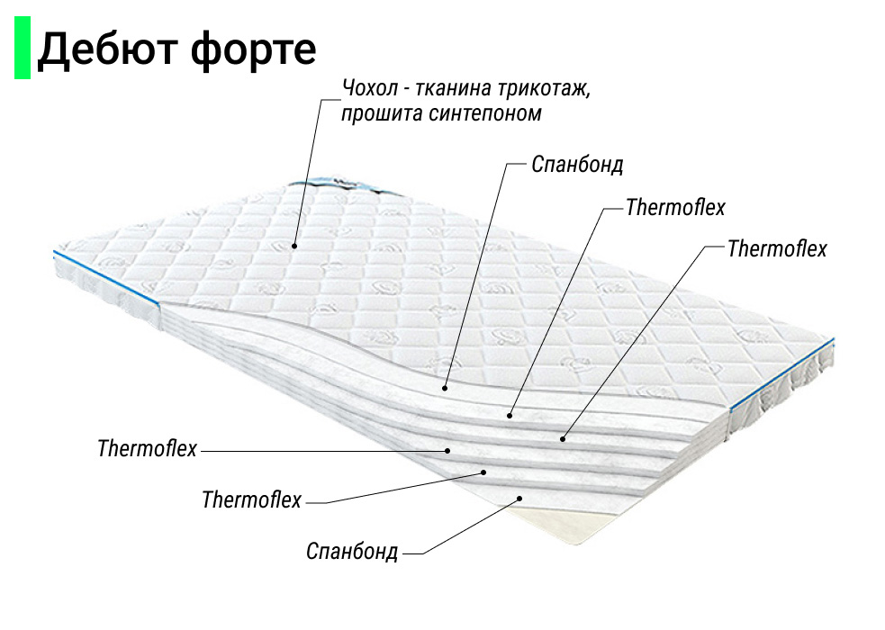 Матрац тонкий полуторний Sweet Sleep Debut Forte 125x190 см • висота 8 см (середня жорсткість)