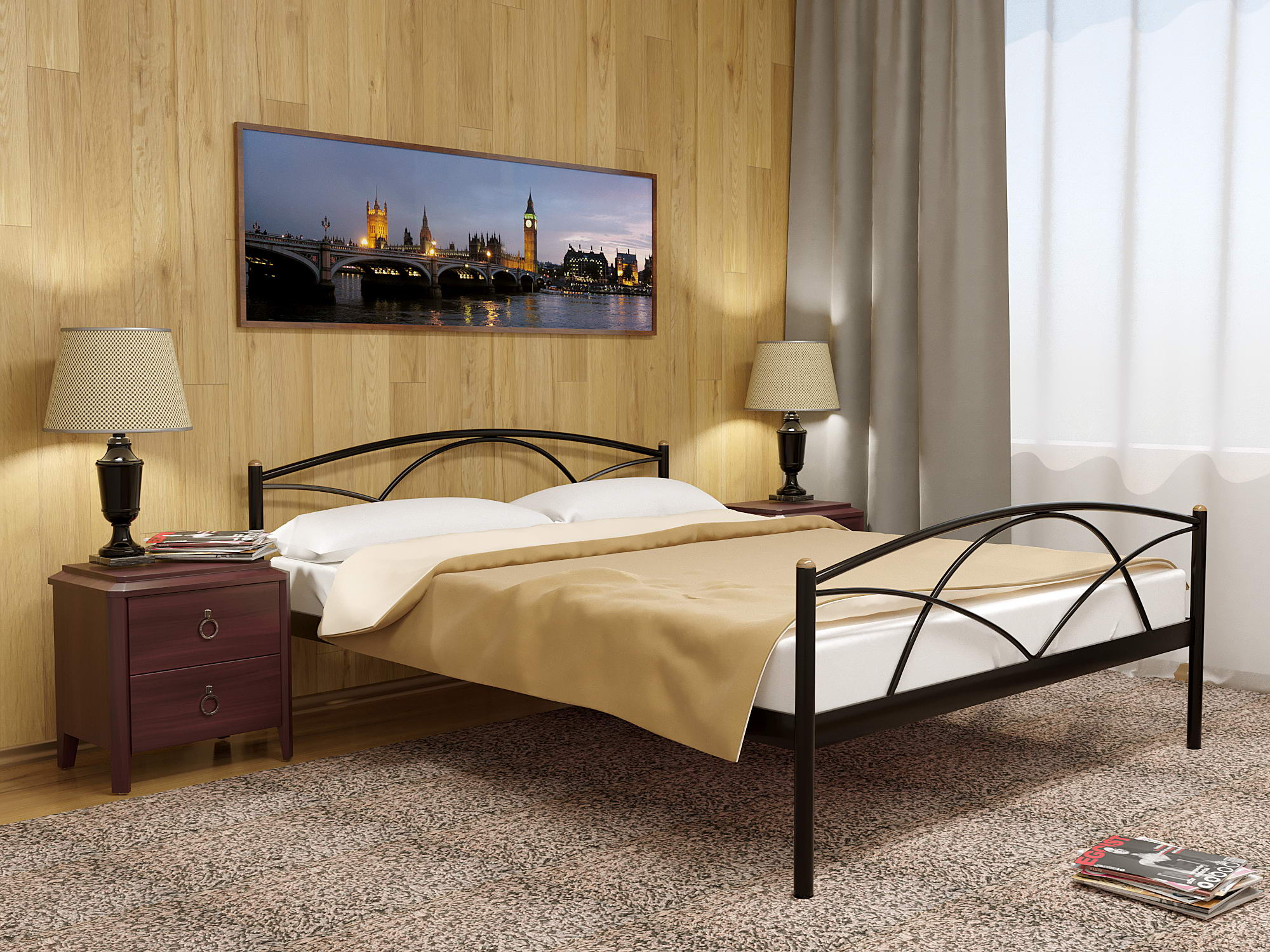 Вишуканий дизайн ліжка Palermo 2 від українського виробника Метакам доповнить будь-який інтер’єр і створить гармонійне та яскраве стилістичне поєднання. Ліжко виготовлено з металевої труби з товщиною стінки 1.2 — 1.5 мм. Каркас, що складається з двох частин, зроблений з міцного металу, який спільно зі сталевими трубками є основою під матрац, надає жорсткості та надійності конструкції. У верхній частині ліжка стоять дерев’яні заглушки, які елегантно доповнюють дизайн ліжка. Плавні лінії та елегантні переплетення декору узголів’я та узніжжя надають ліжку унікальної краси та натуральної естетики.