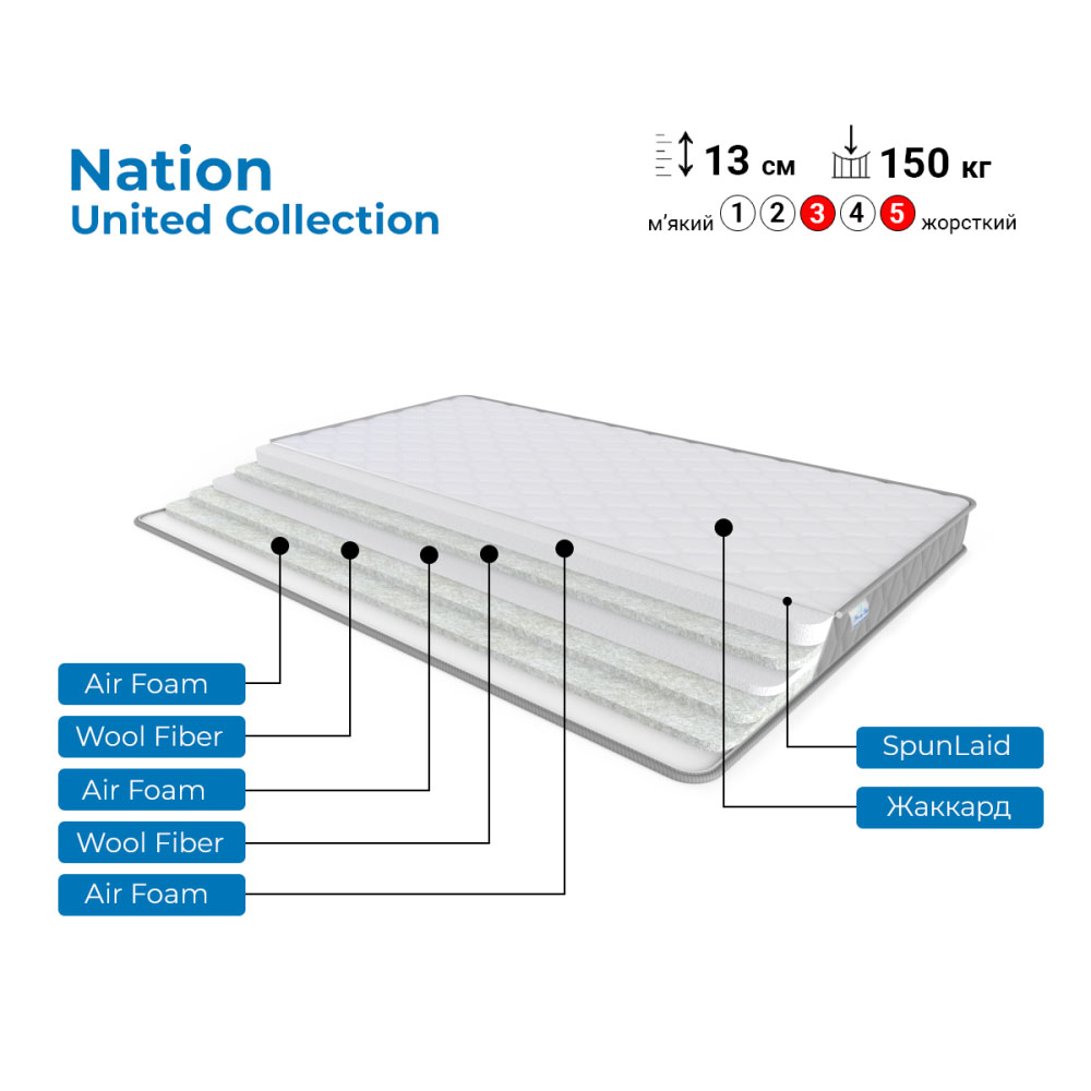 • Комфорт та підтримка: Поєднання високоеластичної піни та натуральних прошарків Wool Fiber забезпечує оптимальний рівень комфорту для спокійного сну.