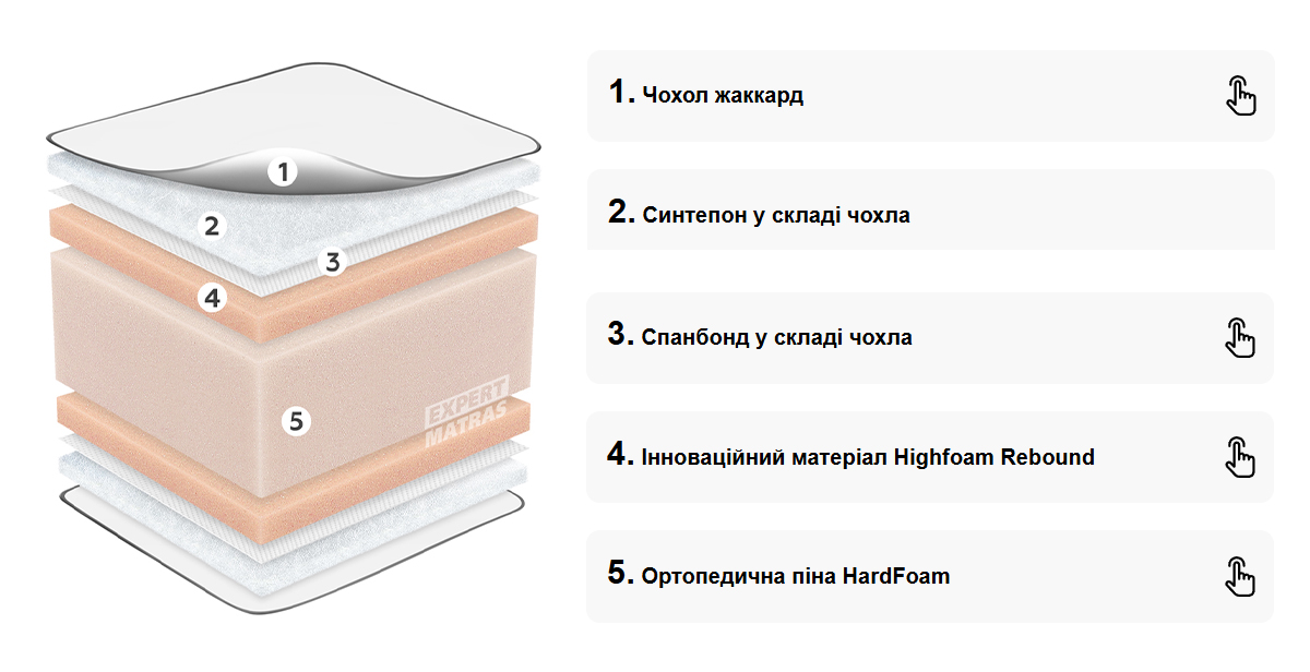 Високотехнологічний процес виробництва пінополіуретану HIGHFOAM®Rebound дозволяє створювати універсальну піну підвищеної жорсткості зі збереженням еластичних властивостей.