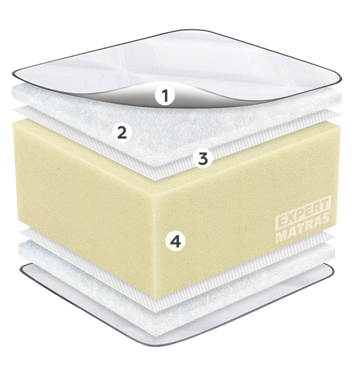 • Пінополіуретан Ortofoam: Основний наповнювач матраца, який забезпечує високу еластичність та адаптивність. Ortofoam рівномірно розподіляє вагу тіла, підтримуючи правильне положення хребта та запобігаючи надмірному тиску на суглоби.