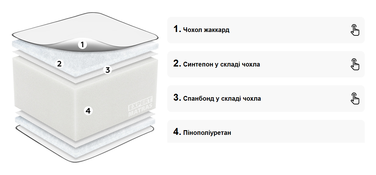 • Так, матрац виготовлений з гіпоалергенних матеріалів. Жакардовий чохол забезпечує надійний захист від пилу і алергенів, роблячи його безпечним для людей з алергією.
