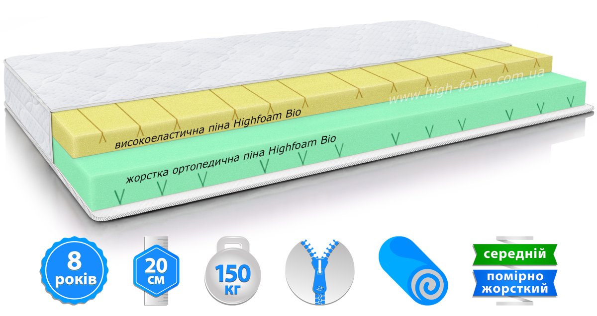 • Оптимальна підтримка та комфорт завдяки комбінації жорсткого та високоеластичного пінополіуретану.
