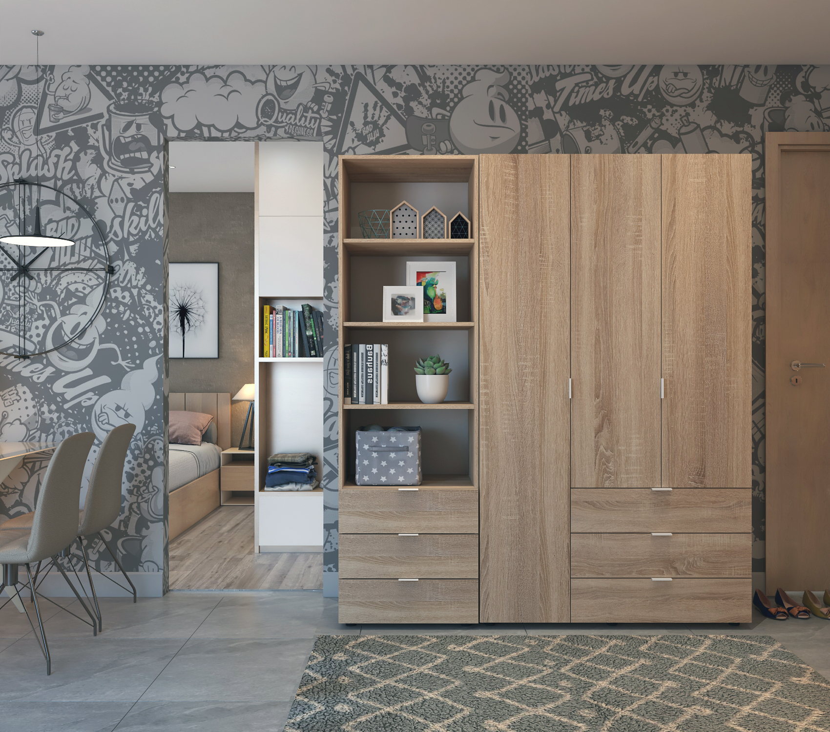Фото Пенал для одягу Doros Гелар Дуб сонома 3Ш 60х49,5х203,4 (41516131) - SOFINO.UA
