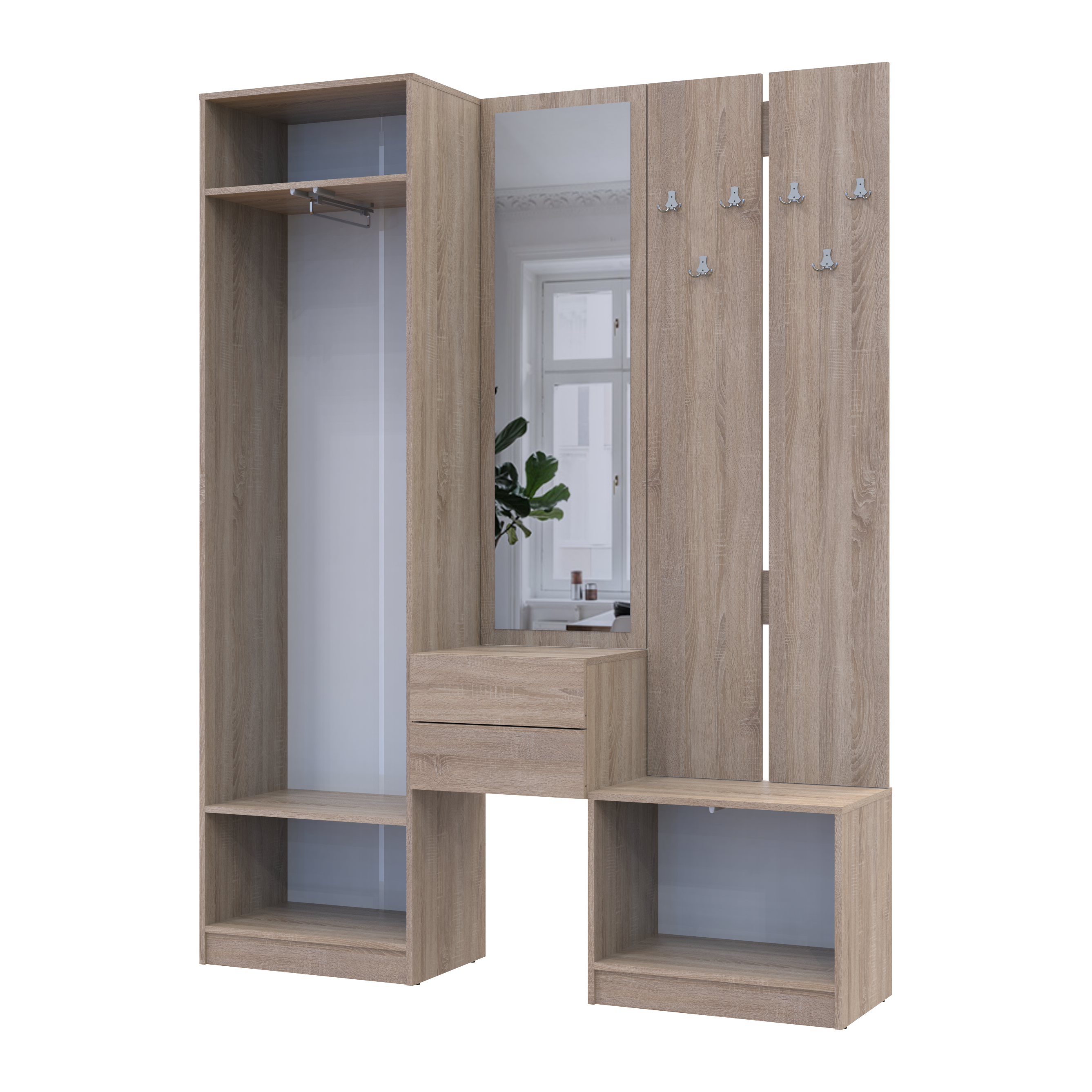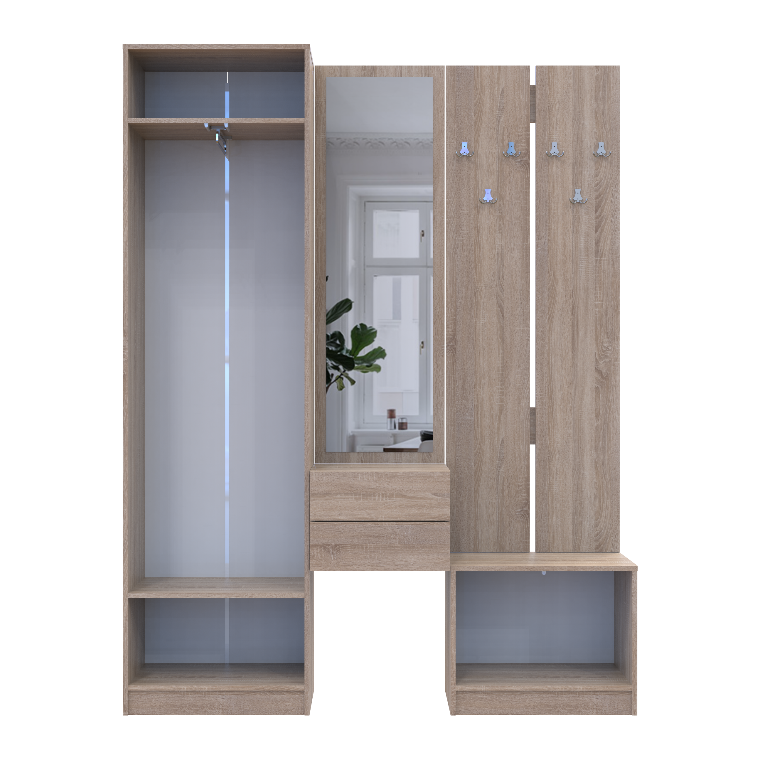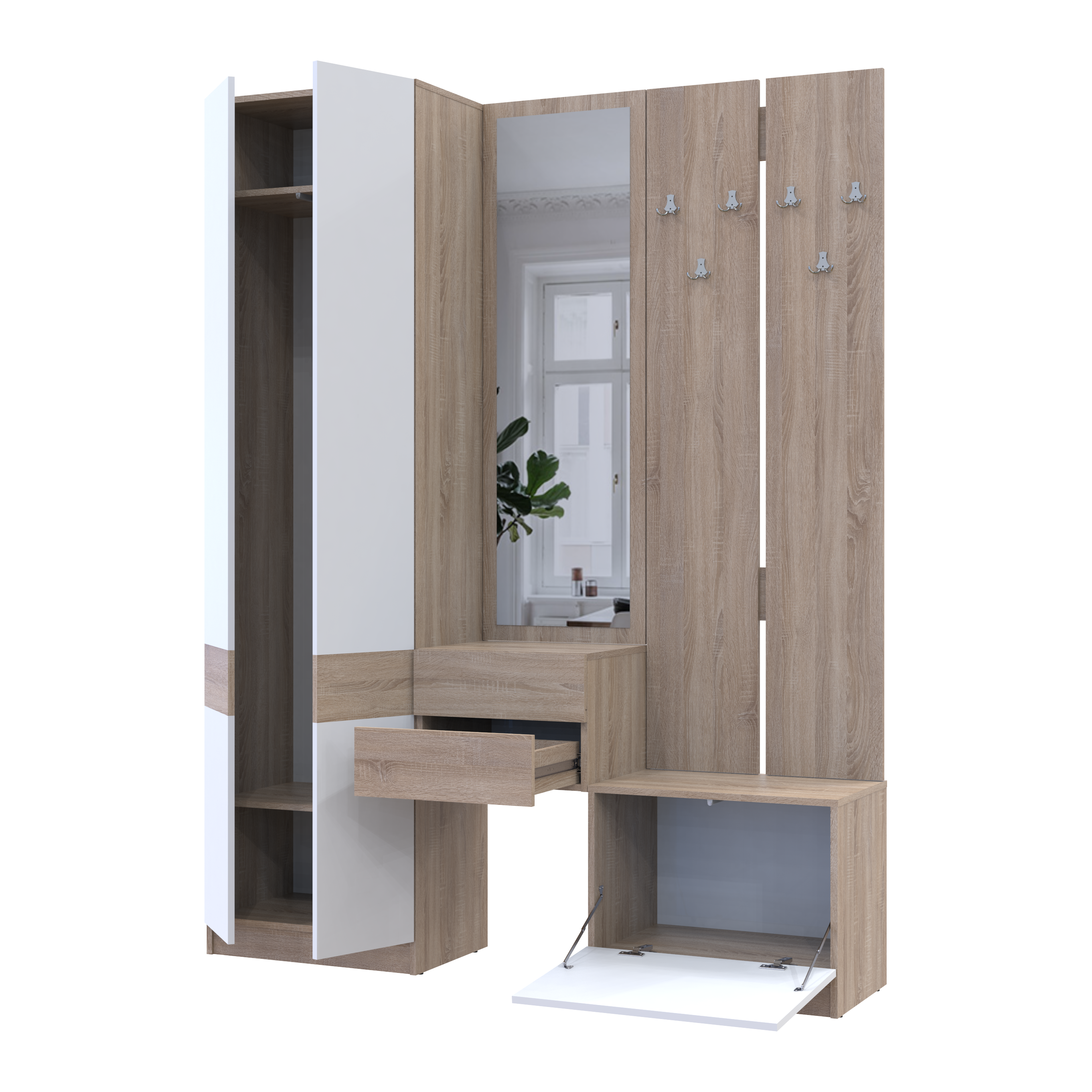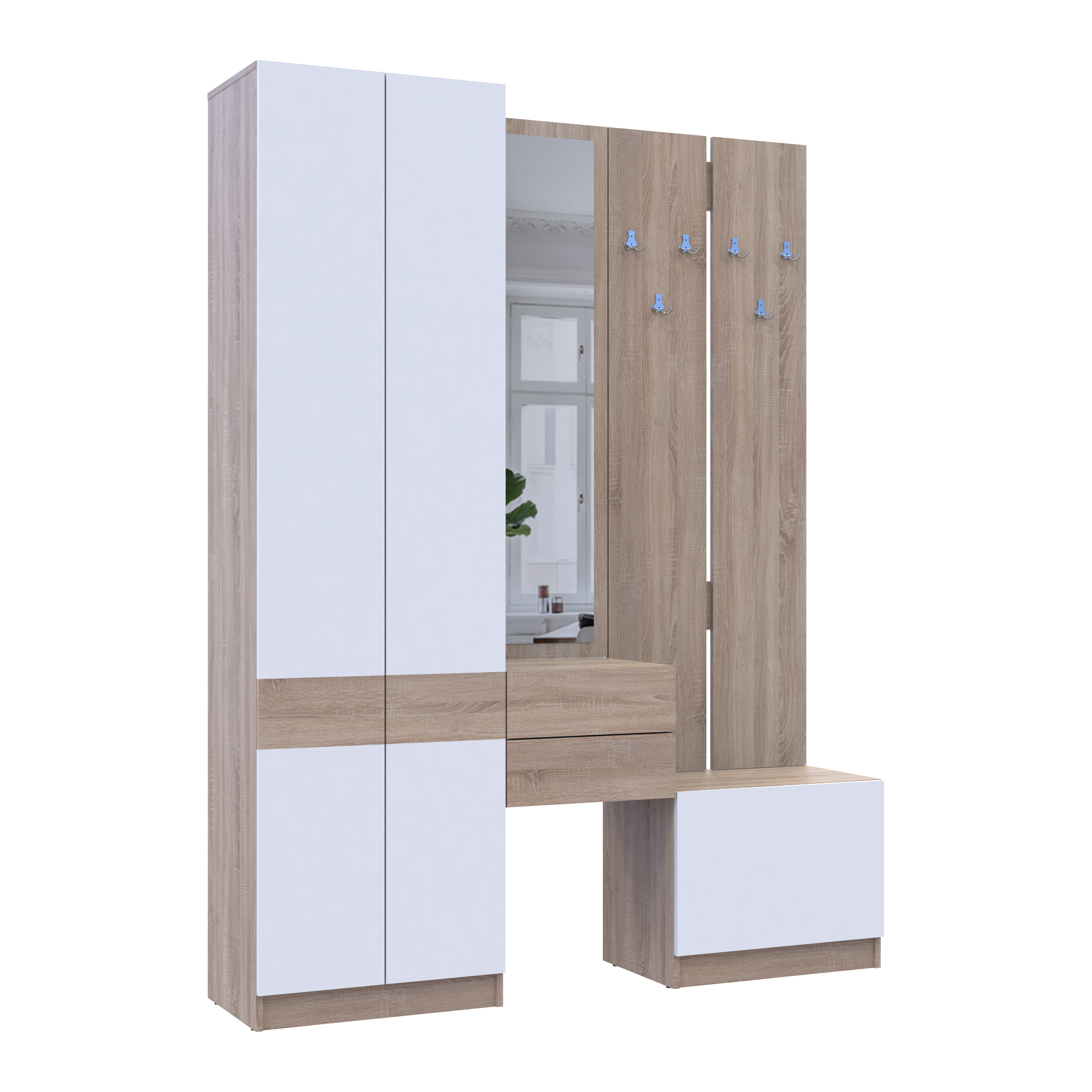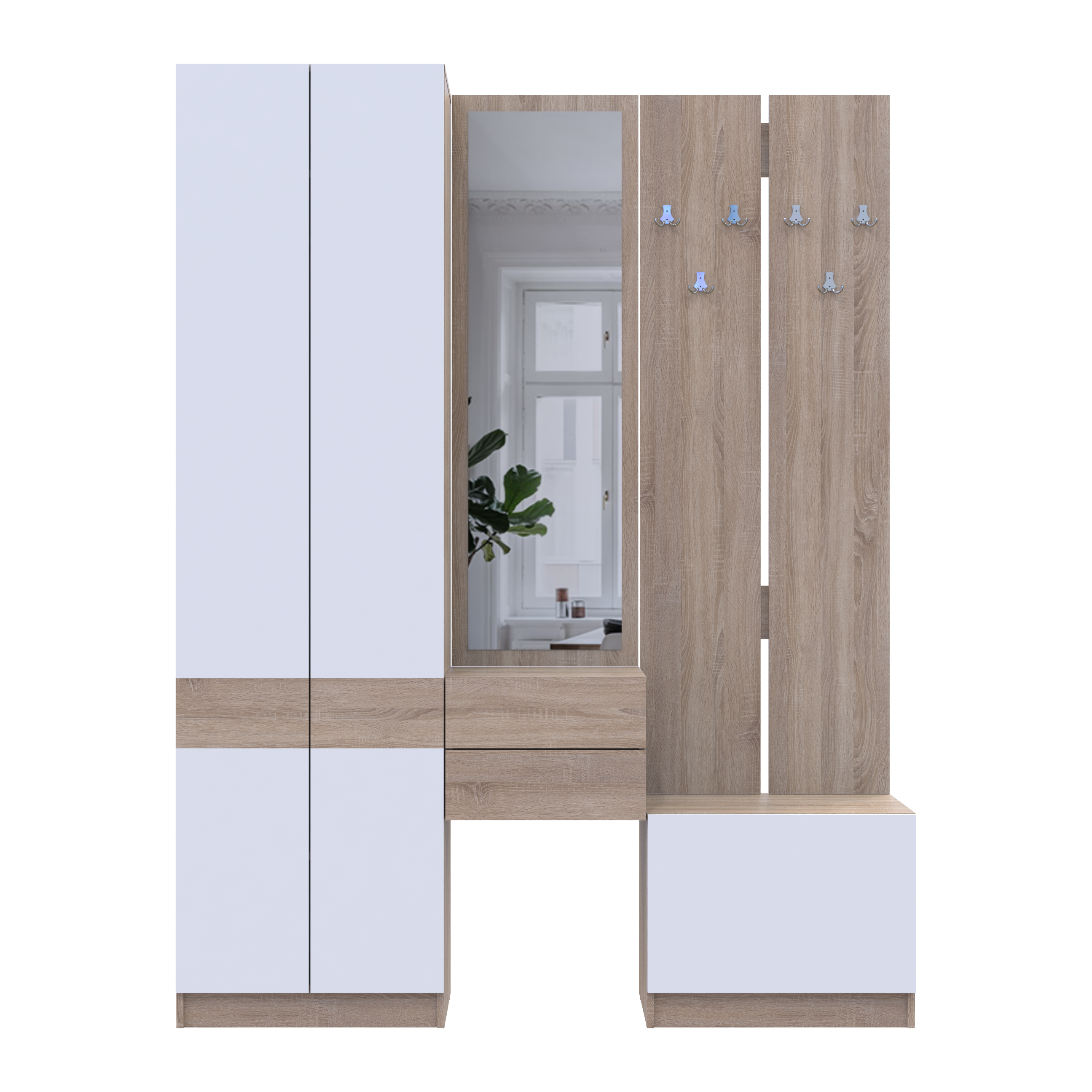 Фото Передпокій Doros Сола Дуб Сонома/Білий ДСП / дзеркало 165х40х215 (42005147) - SOFINO.UA