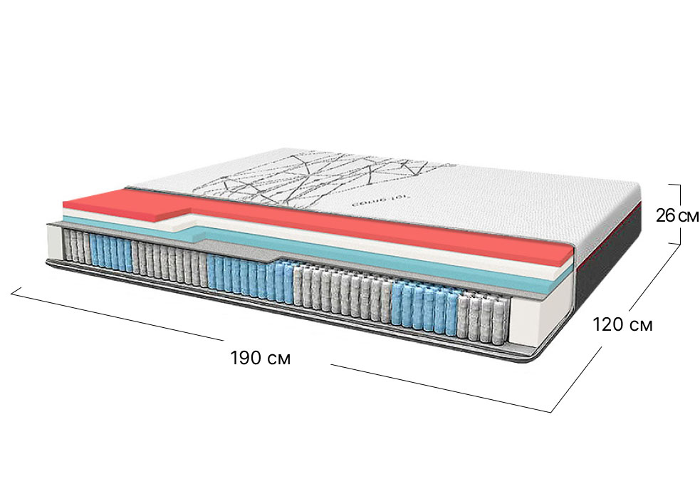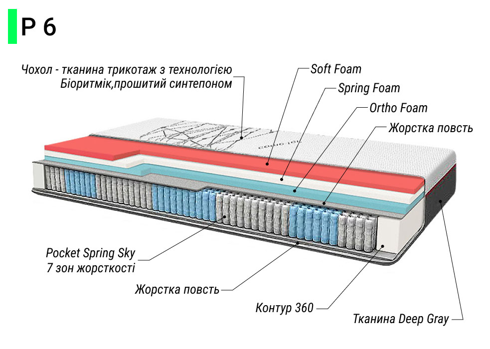 Наповненняпружини Pocket Spring, 7 зон жорсткості, піна ортопедична, термоповсть