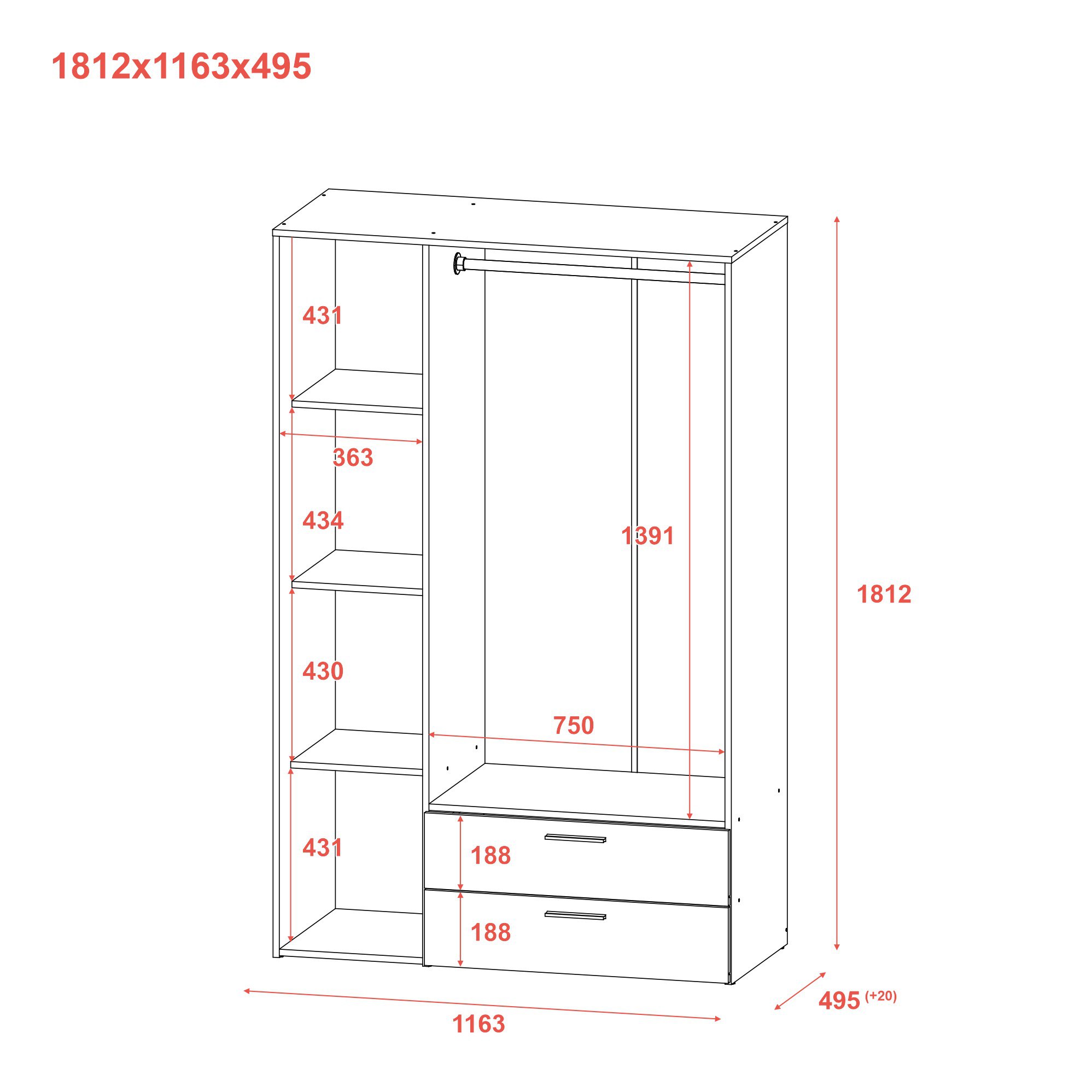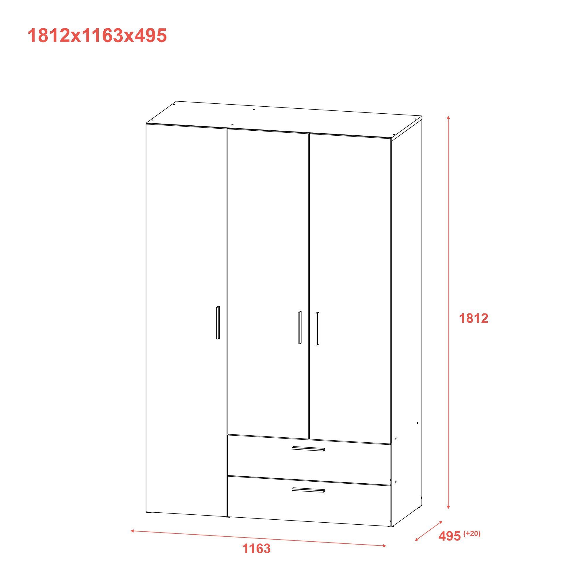 Розпашна Шафа для одягу Doros Ектор Білий 3 ДСП 116х180х49.5 (80737076)