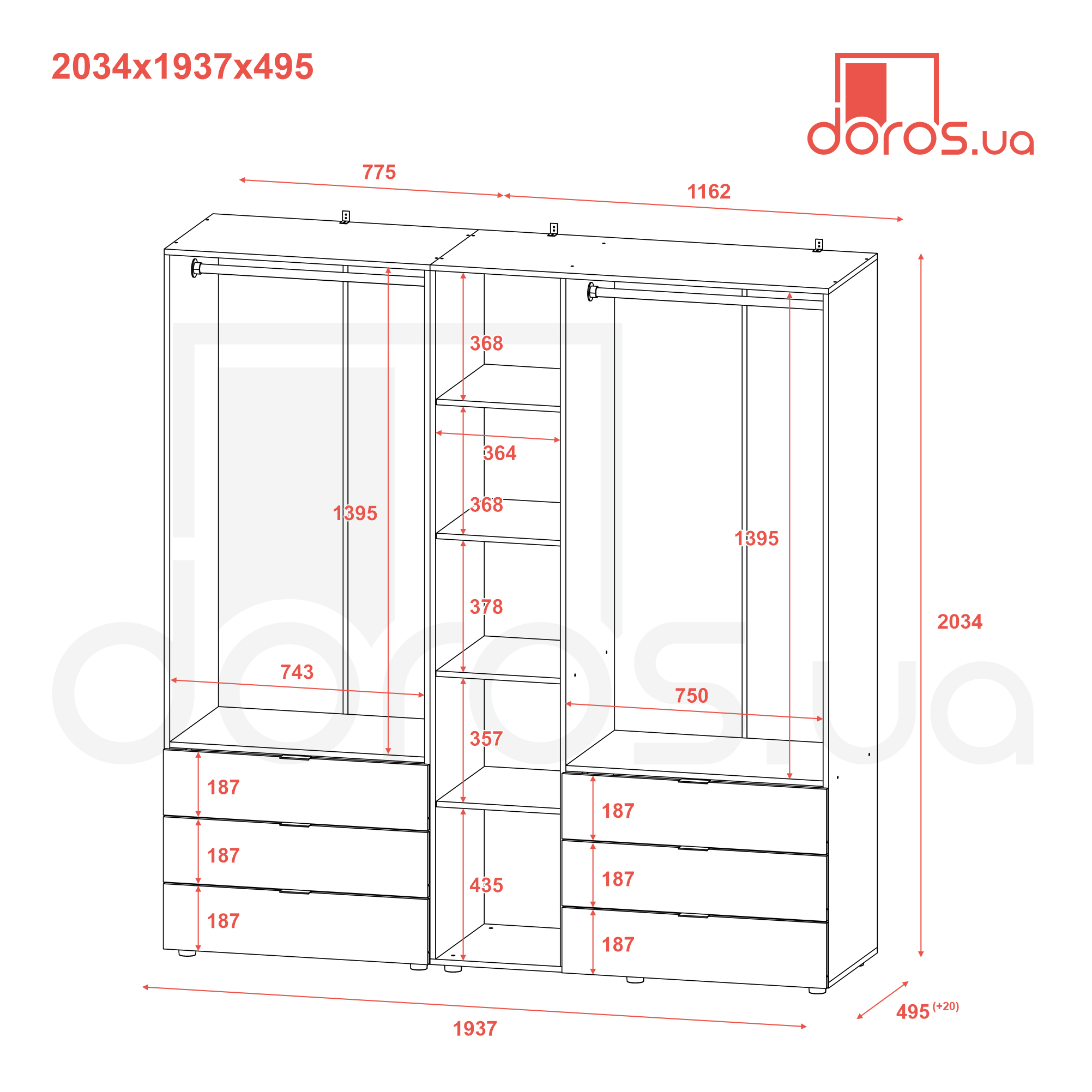 Розпашна Шафа для одягу Doros Гелар комплект Білий 2+3 ДСП 193,7х49,5х203,4 (42002116)