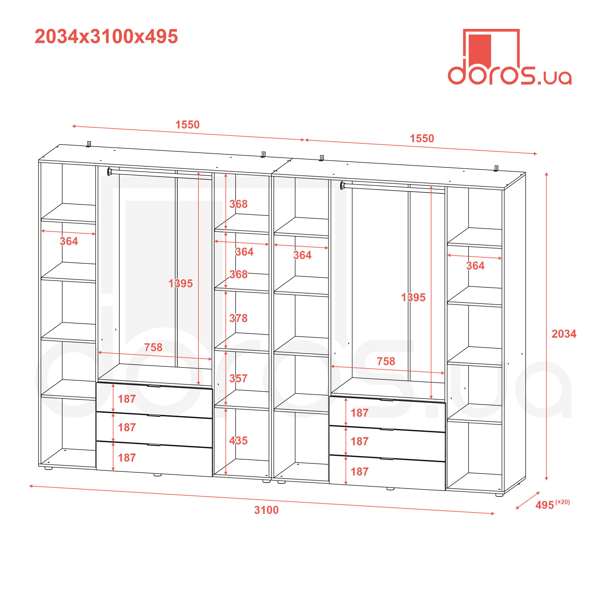 Розпашна Шафа для одягу Doros Гелар комплект Кашемір 4+4 ДСП 310х49,5х203,4 (80737642)