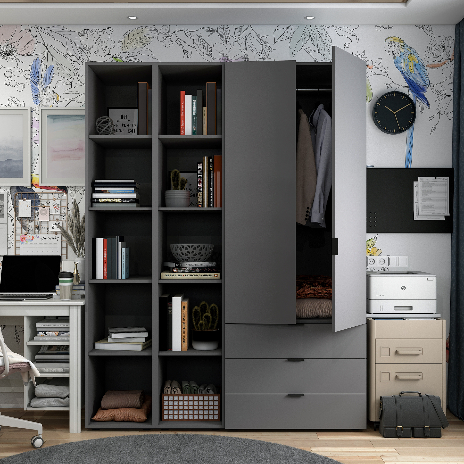 Розпашна Шафа для одягу Doros Гелар з 2 Етажерками Графіт 2 ДСП 153,9х49,5х203,4 (80737644)