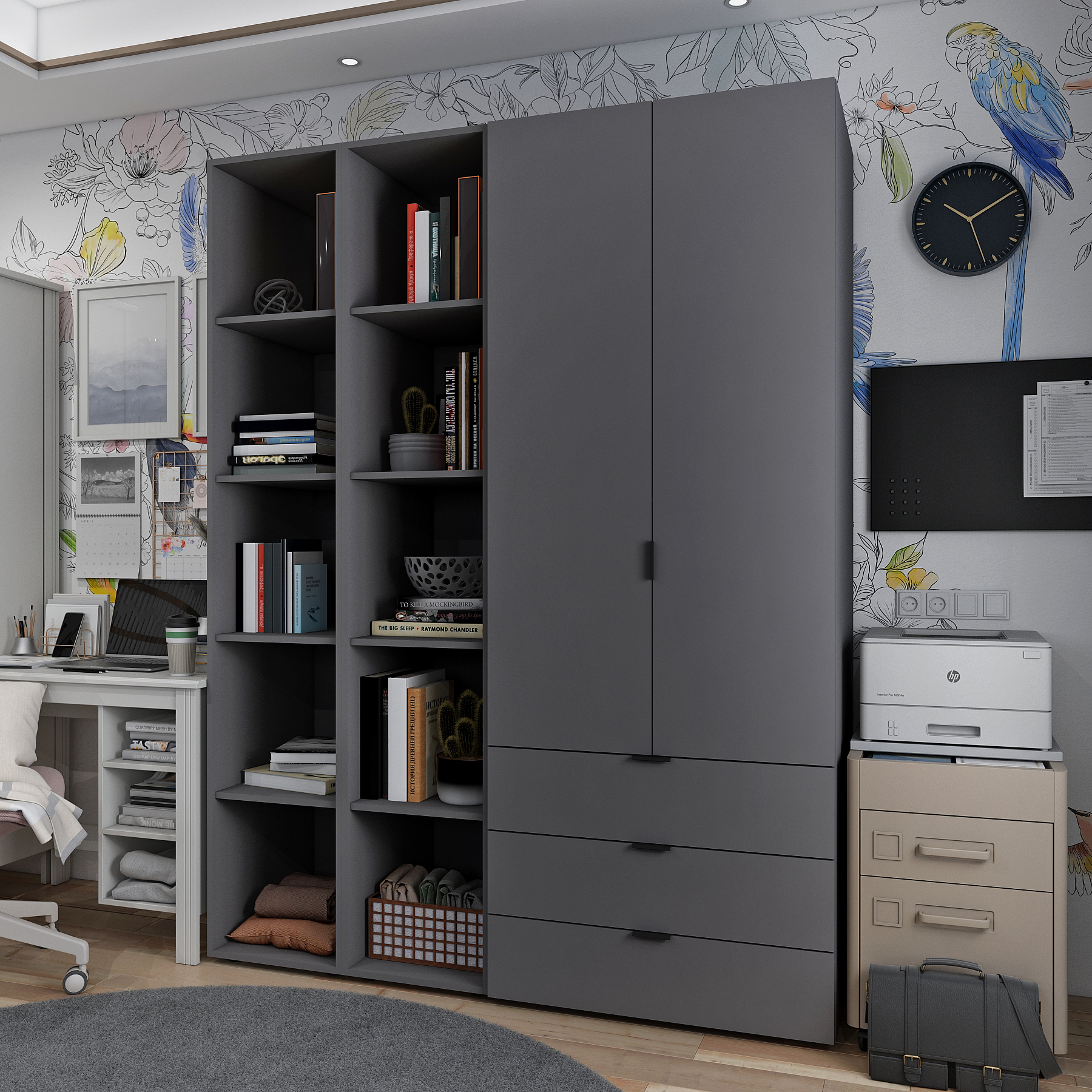 Фото Розпашна Шафа для одягу Doros Гелар з 2 Етажерками Графіт 2 ДСП 153,9х49,5х203,4 (80737644) - SOFINO.UA
