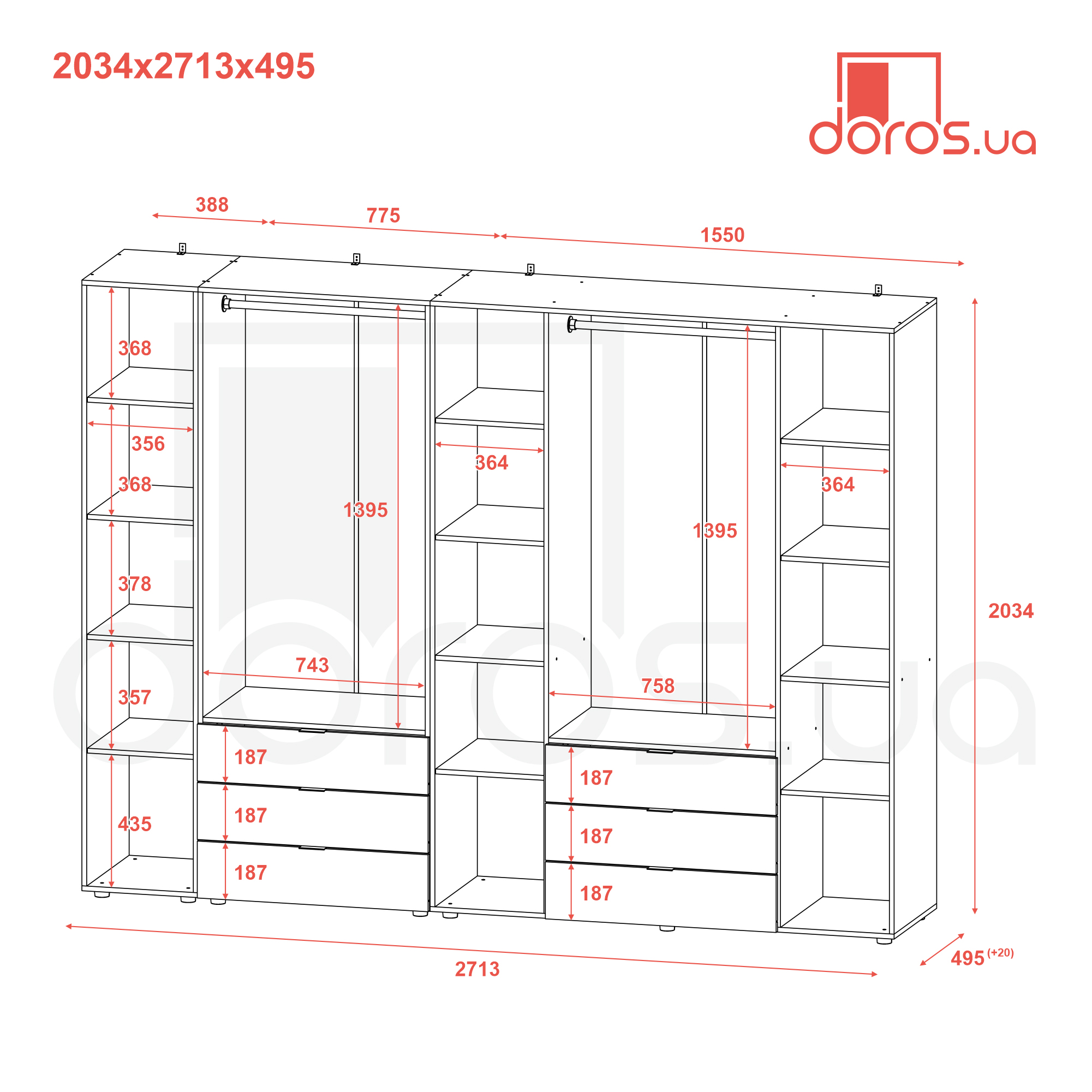 Фото Розпашна Шафа для одягу Doros Гелар з Етажеркою Білий 2+4 ДСП 270,7х49,5х203,4 (80737651) - SOFINO.UA