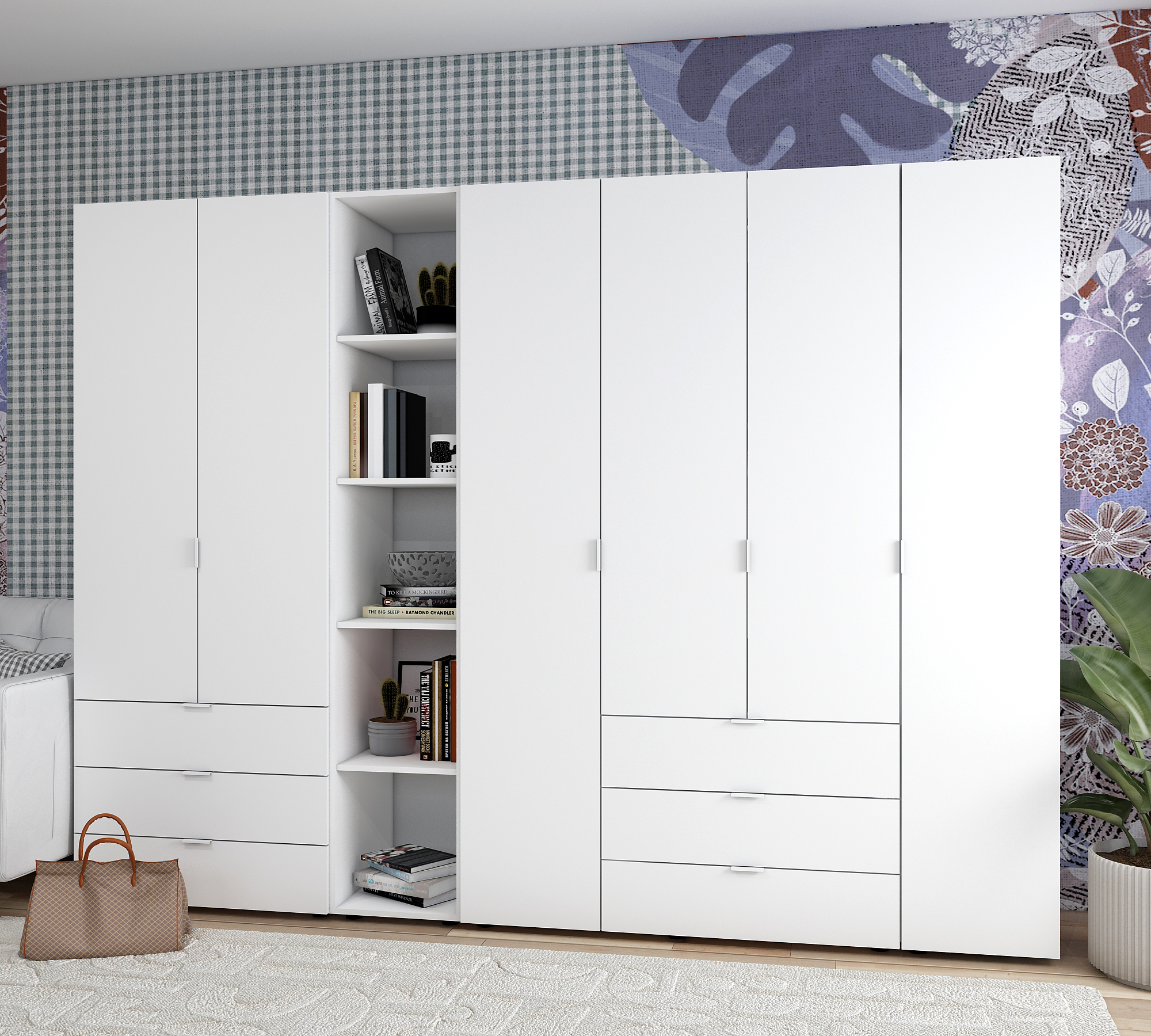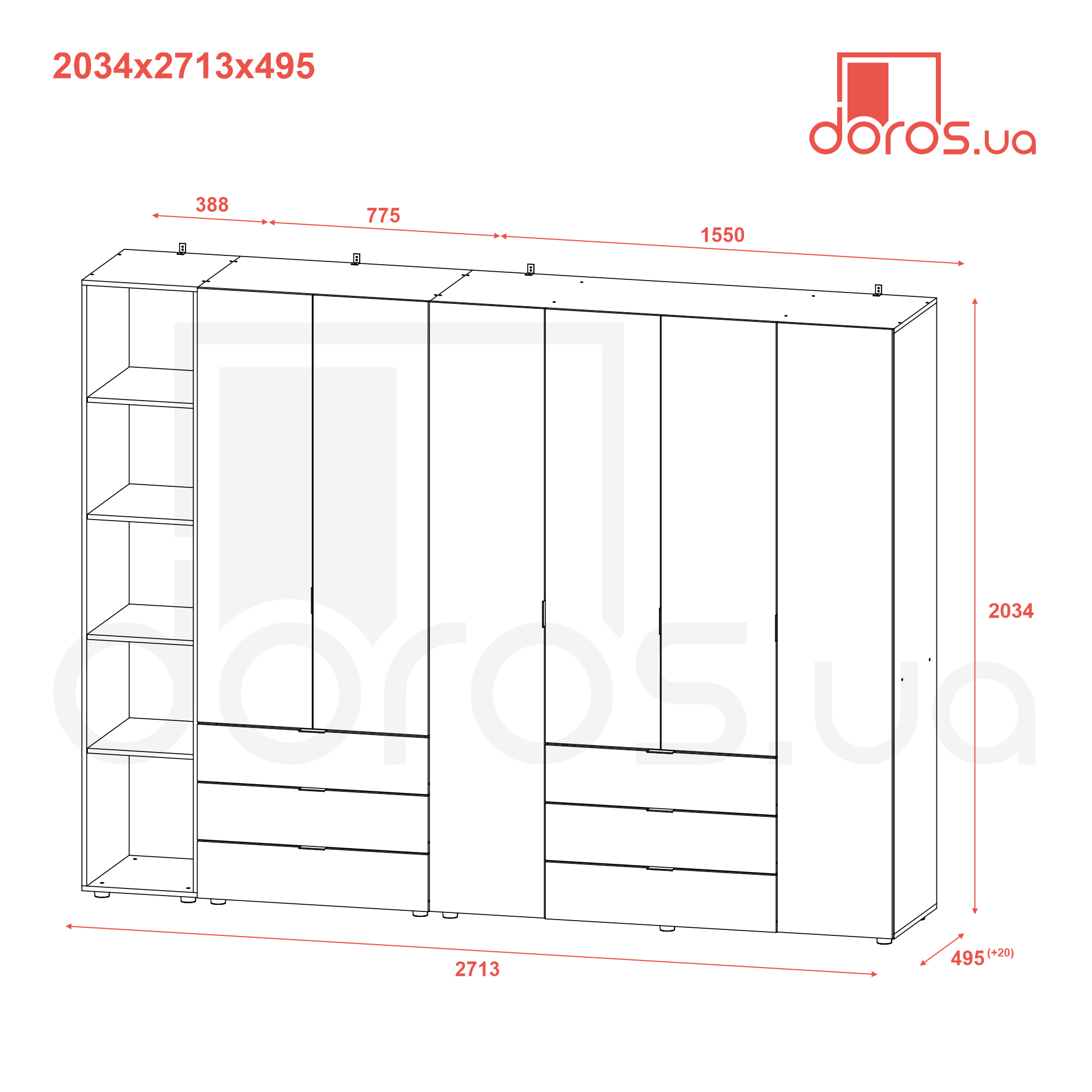 Розпашна Шафа для одягу Doros Гелар з Етажеркою Білий 2+4 ДСП 270,7х49,5х203,4 (80737651)