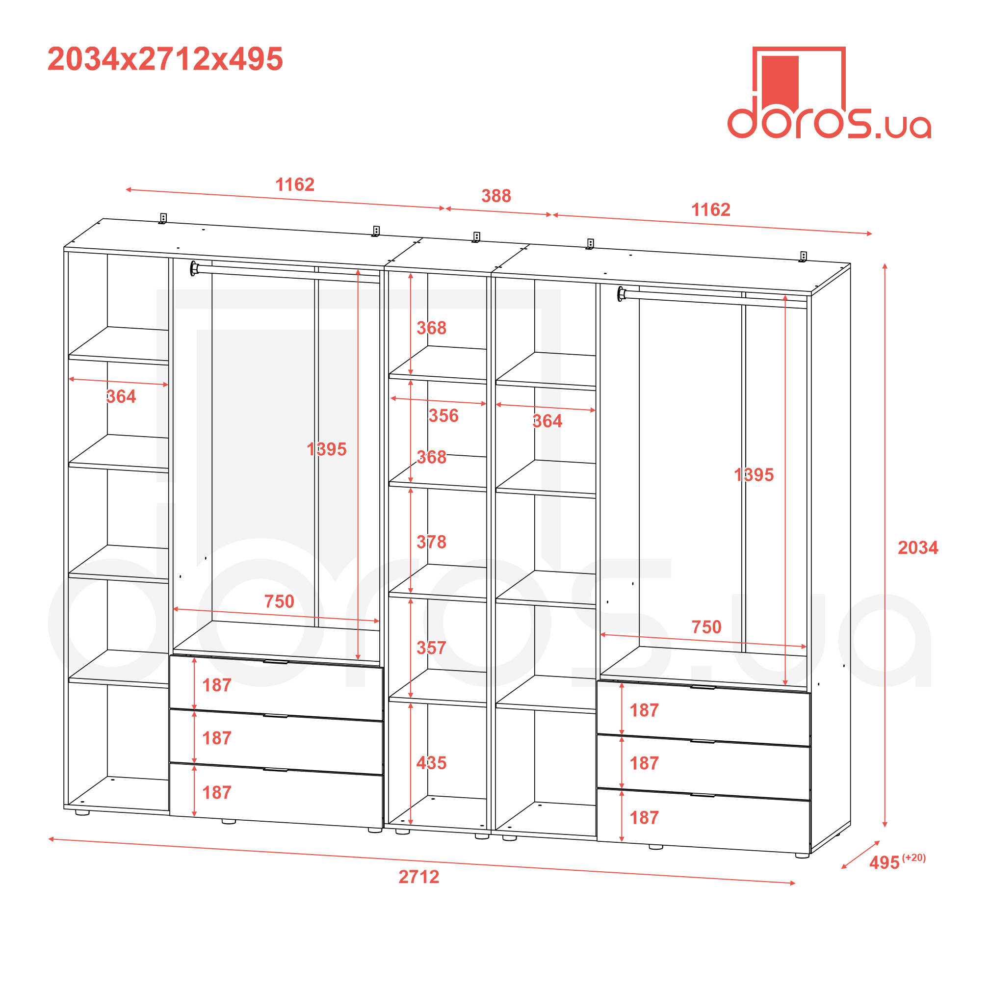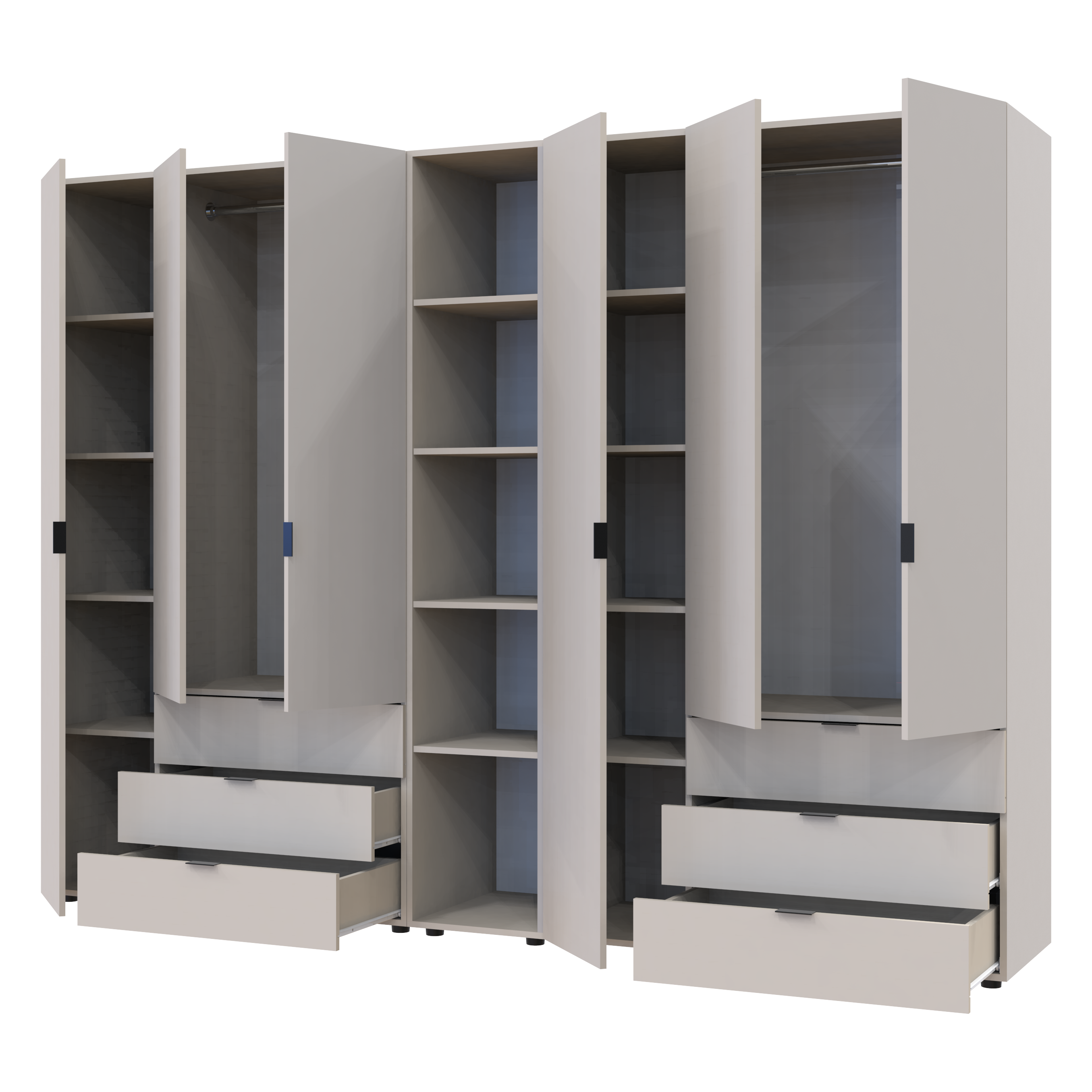 Фото Розпашна Шафа для одягу Doros Гелар з Етажеркою Кашемір 3+3 ДСП 270,6х49,5х203,4 (80737652) - SOFINO.UA