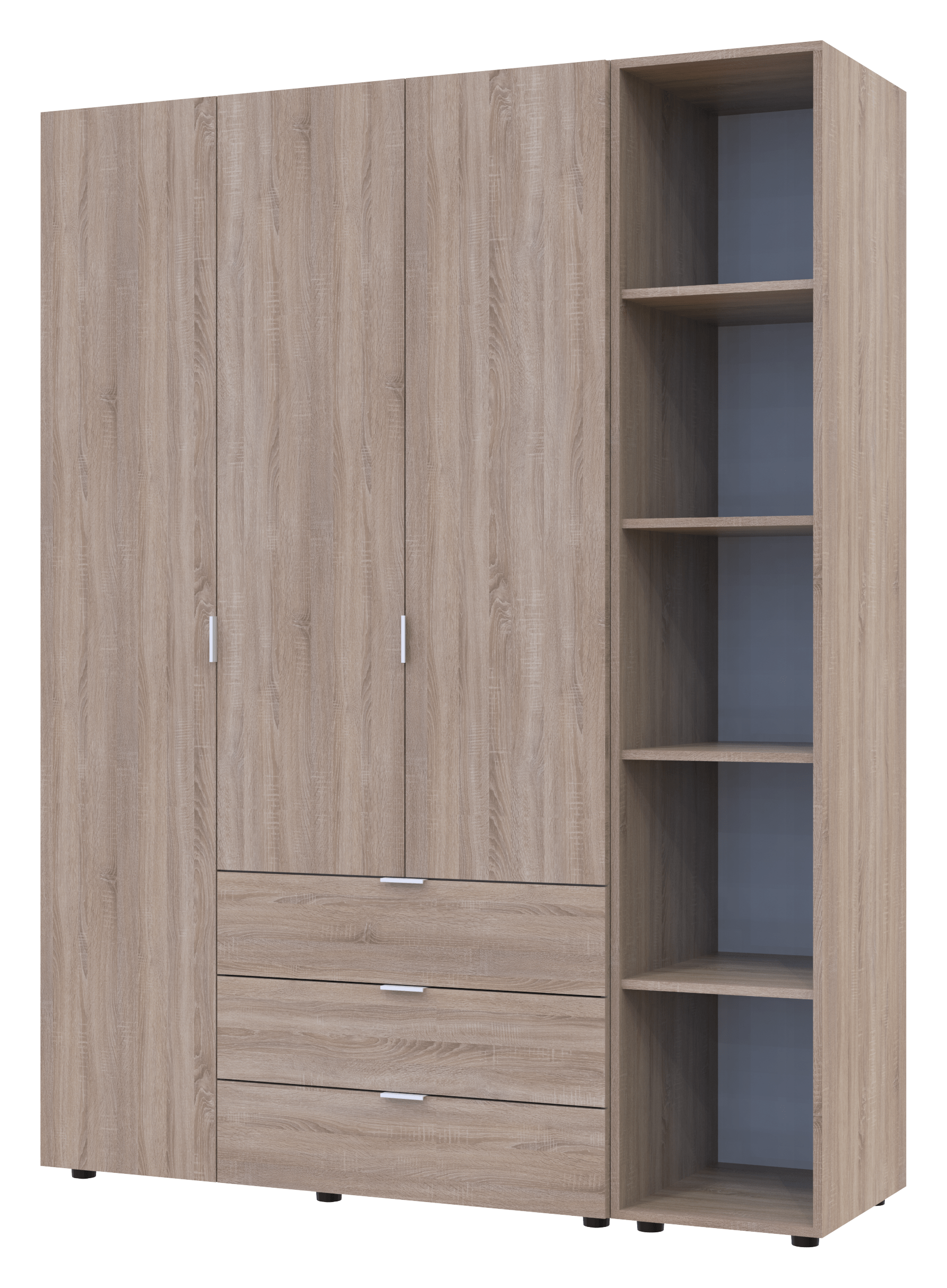 Фото Розпашна Шафа для одягу Doros Гелар з Етажеркою Білий 3 ДСП 154,4х49,5х203,4 (80737645) - SOFINO.UA