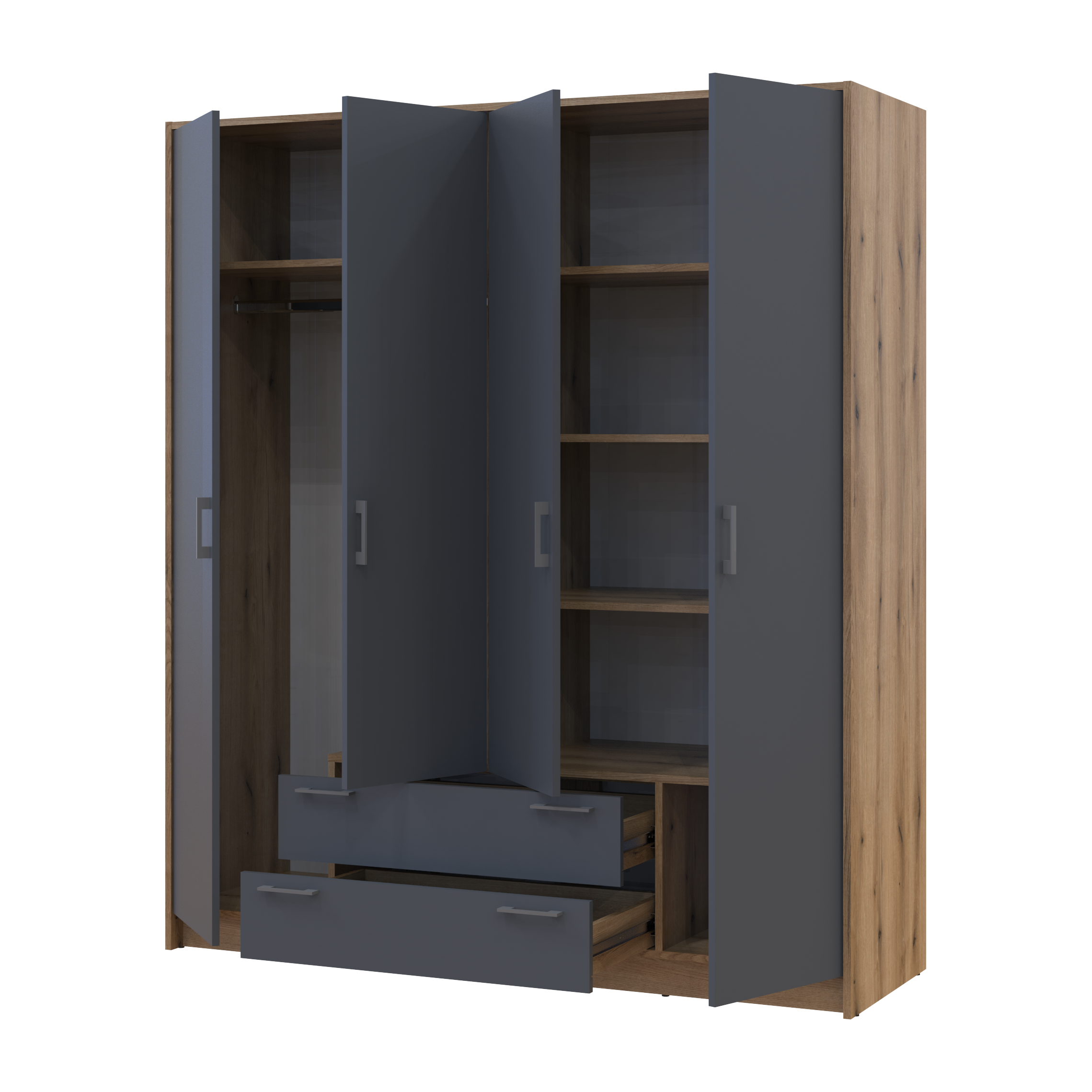 Розпашна Шафа для одягу Doros Ронді Дуб Артізан/Графіт 4ДСП 160х52х195 (80737824)