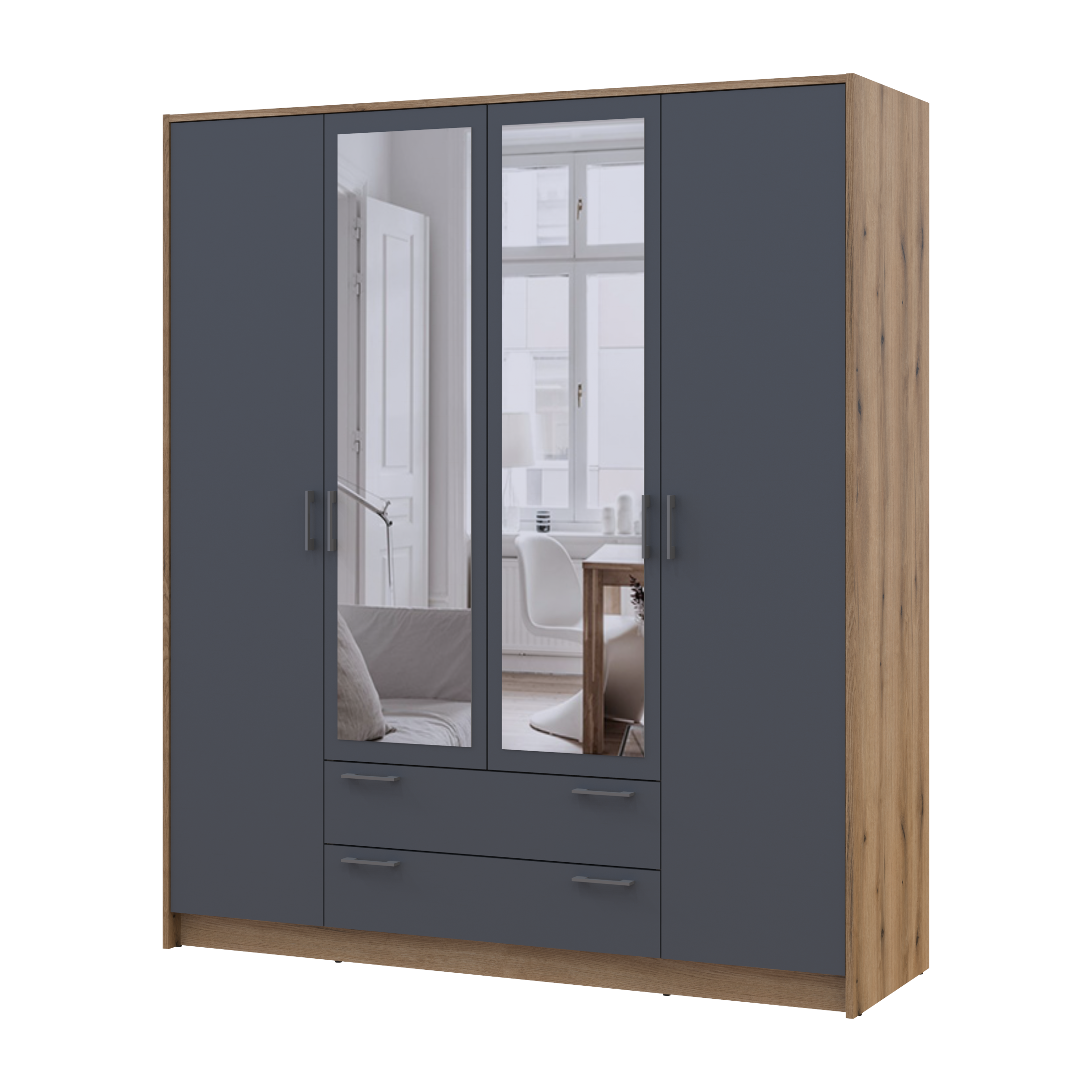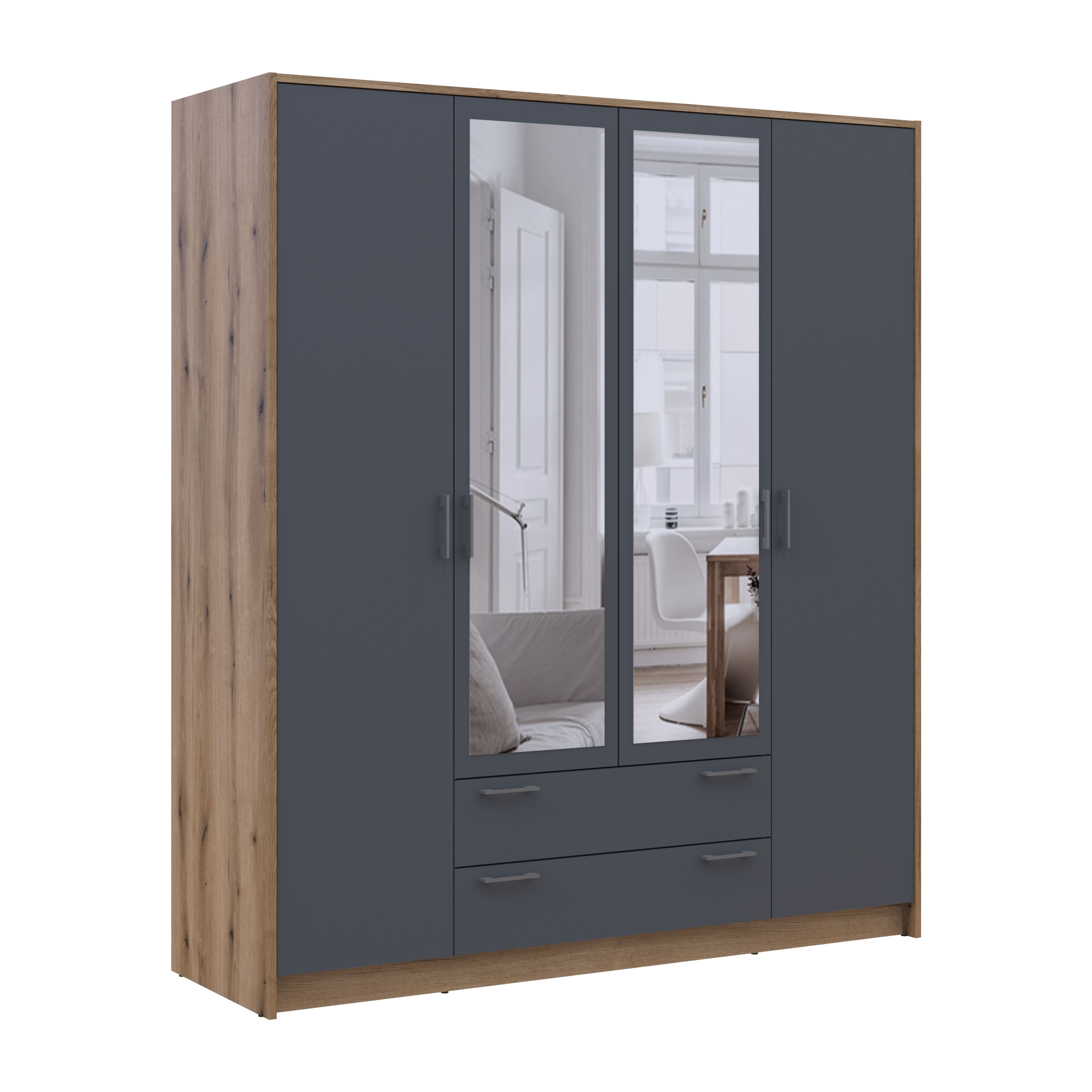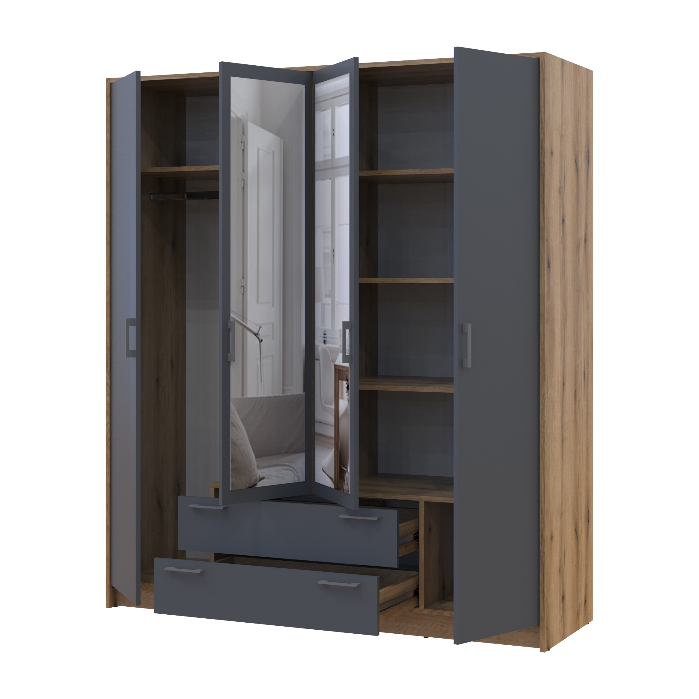 Розпашна Шафа для одягу Doros Ронді з дзеркалом Дуб Артізан/Графіт 4ДСП 160х52х195 (80737826)