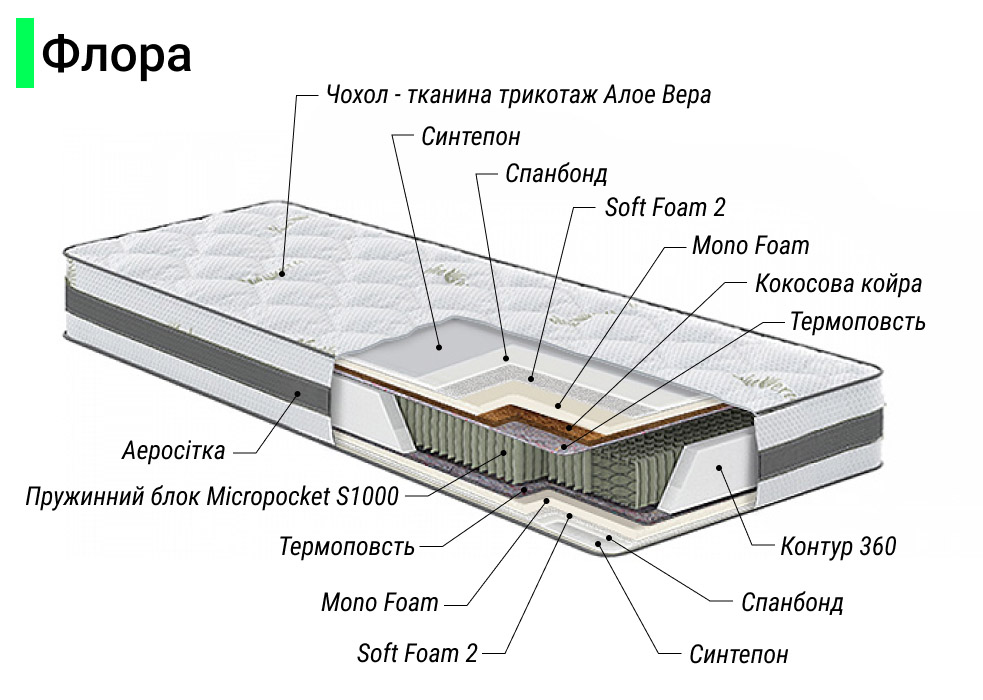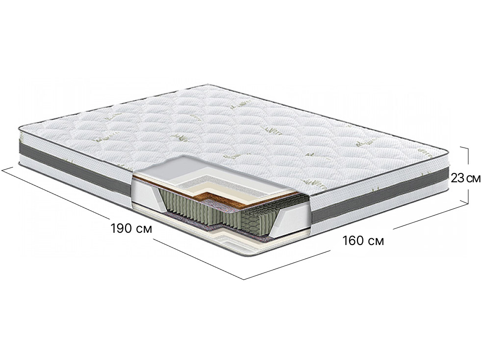 Фото Матрас пружинный двуспальный Aloe Vera Flora 160x190 см • высота 23 см (умеренно жесткий) - SOFINO.UA