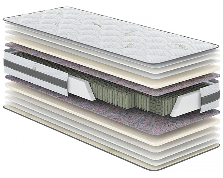 Матрас пружинный двуспальный Aloe Vera Verda 140x190 см • высота 22 см (умеренно жесткий)
