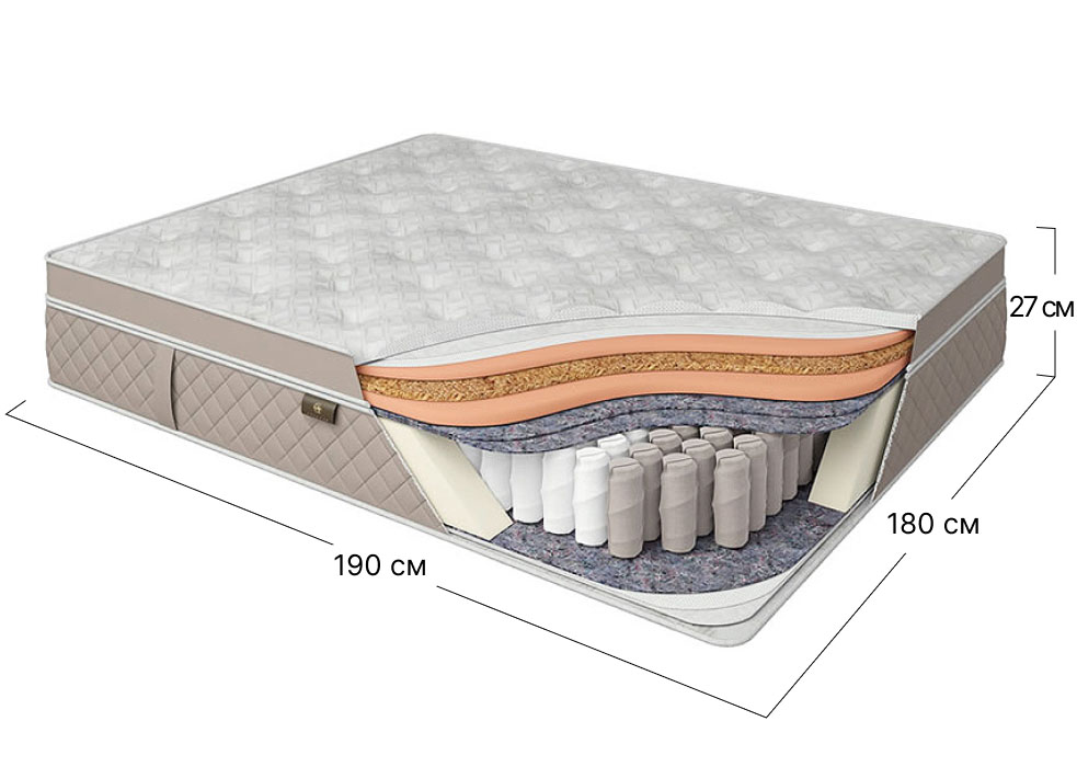 Матрас пружинный двуспальный Dynasty Lancaster Royal 180x190 см • высота 27 см (умеренно жесткий)