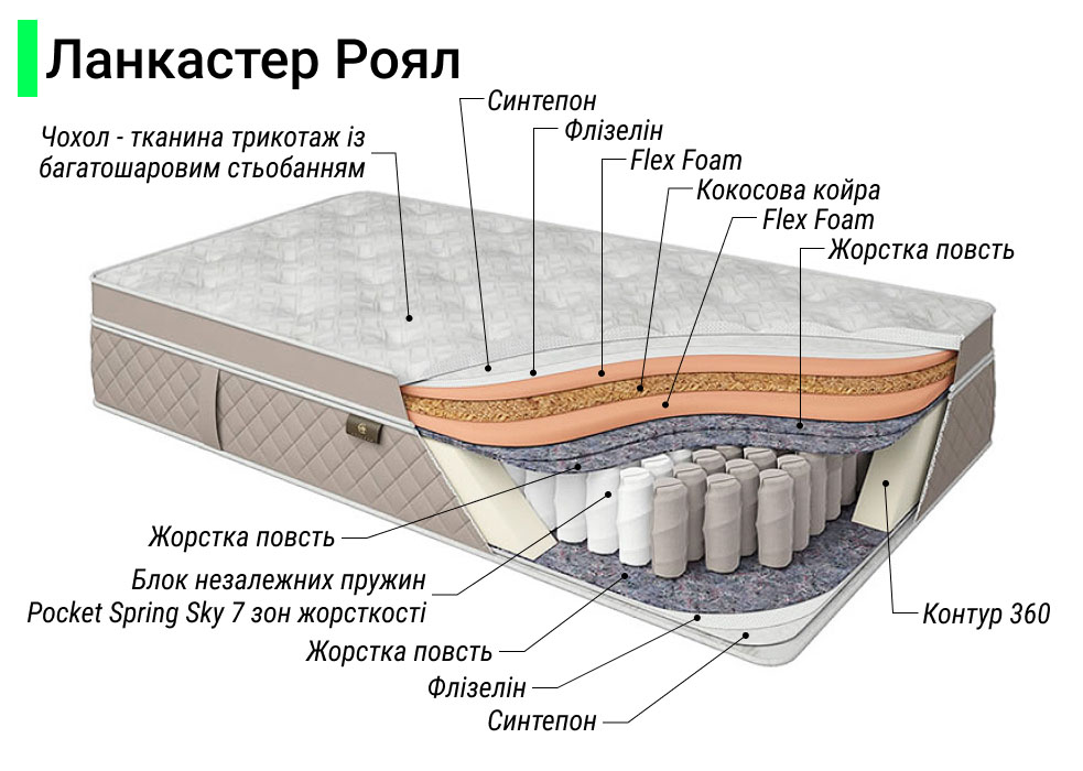 Фото Матрас пружинный двуспальный Dynasty Lancaster Royal 180x190 см • высота 27 см (умеренно жесткий) - SOFINO.UA