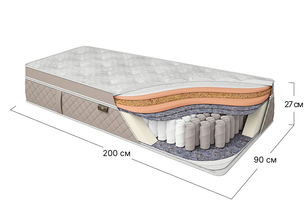 Матрас пружинный односпальный Dynasty Lancaster Royal 90x200 см • высота 27 см (умеренно-жесткий)