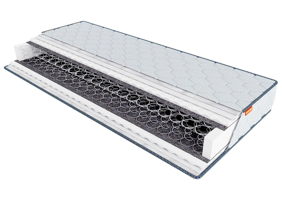 Ортопедическая пена. Пена высокой плотности, нетоксичный, долговечный и гипоаллергенный материал, способствующий правильному распределению давления на разные участки тела, снимает нагрузку с сосудов и улучшает кровообращение во время сна. Она легко адаптируется под контуры тела человека и быстро восстанавливает свою первоначальную форму после сжатия, придает комфортность и усиливает ортопедические свойства матраса.