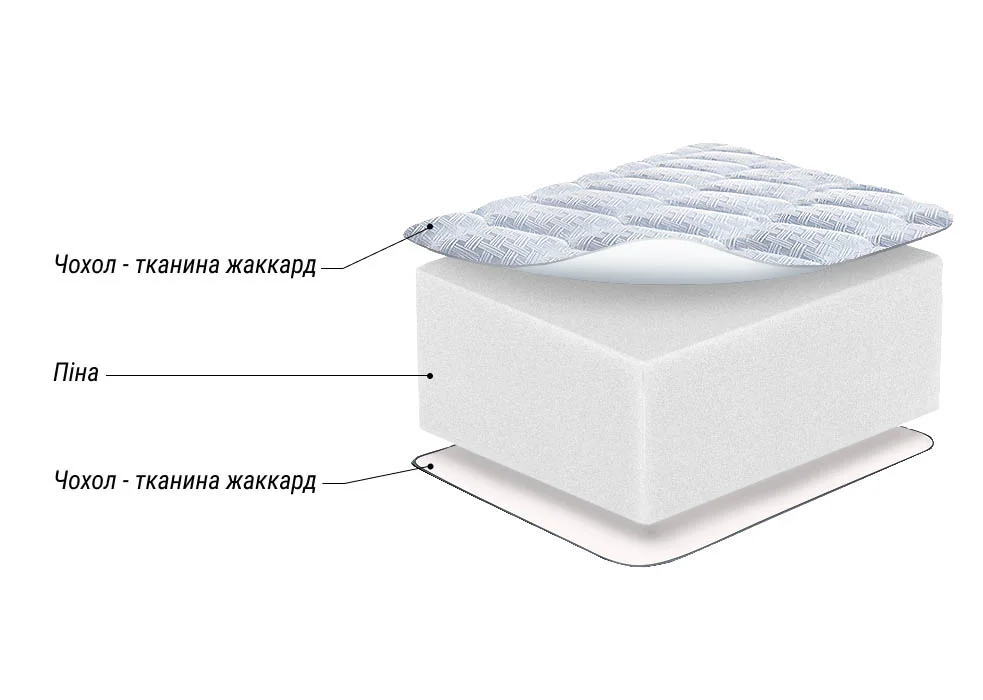 Ортопедическая пена. Пена высокой плотности, нетоксичный, долговечный и гипоаллергенный материал, способствующий правильному распределению давления на разные участки тела, снимает нагрузку с сосудов и улучшает кровообращение во время сна. Она легко адаптируется под контуры тела человека и быстро восстанавливает свою первоначальную форму после сжатия, придает комфортность и усиливает ортопедические свойства матраса.